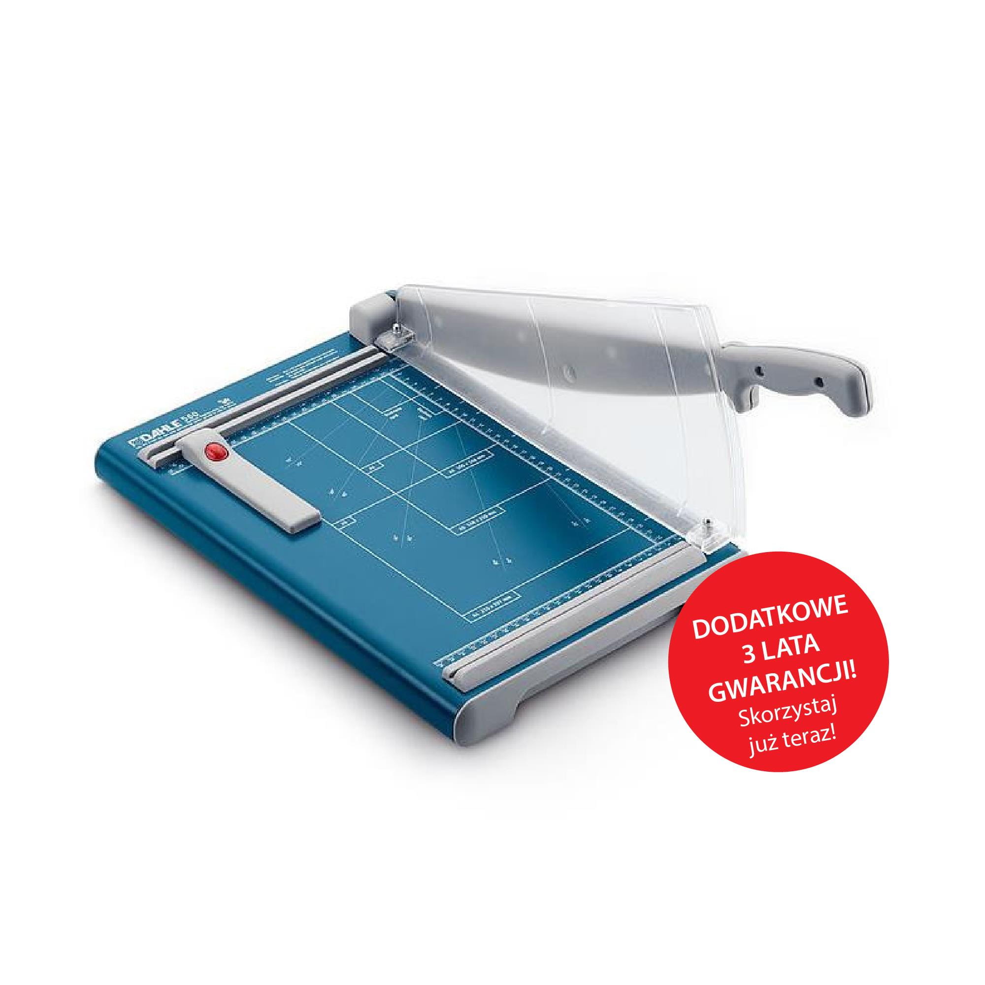 Zakupioną gilotynę zarejestruj do 30 dni od zakupu na: https://www.novus-dahle.com/pl/dodatkowa-gwarancji/gilotyny-trymery/