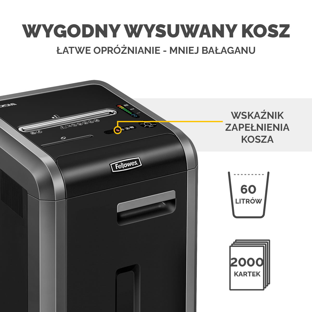 - Eliminuje uciążliwe zacięcia dokumentów dzięki systemowi 100% Jam Proof - elektronicznemu czujnikowi ilości niszczonych kartek