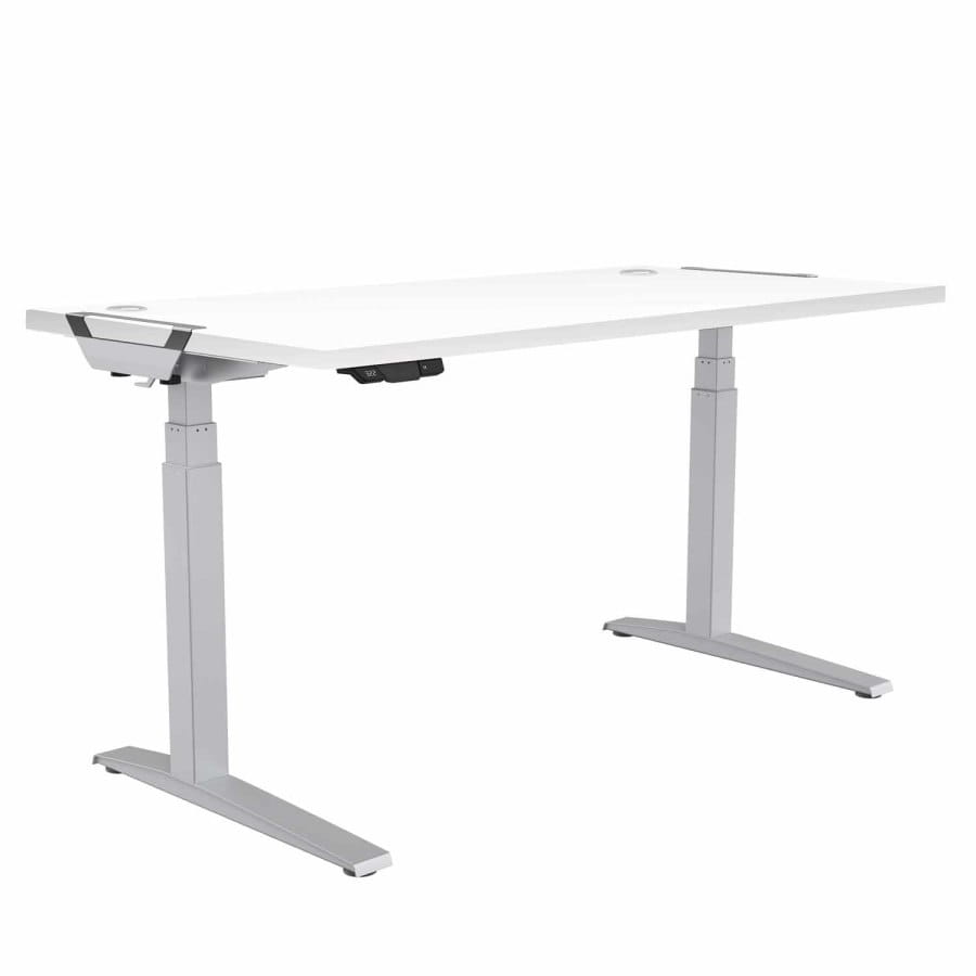 Biurko z elektronicznie regulowaną wysokością LEVADO zmieni Twoje miejsce pracy na nowoczesne i bardziej komfortowe, dzięki możliwości płynnej zmiany pozycji pracy z siedzącej na stojącą.