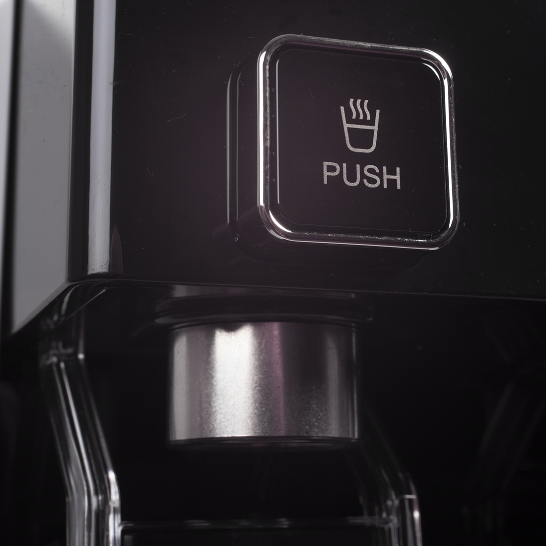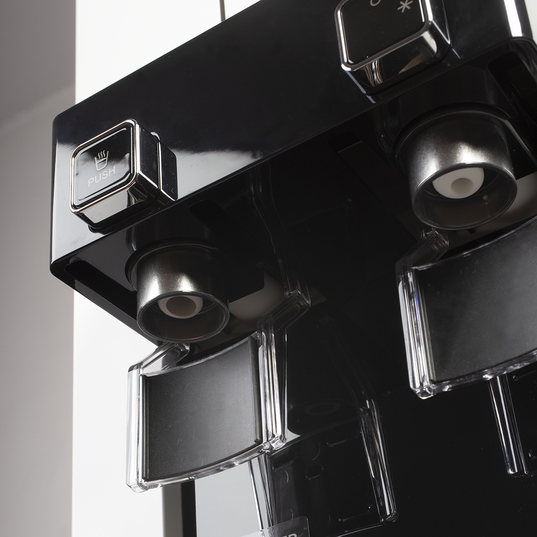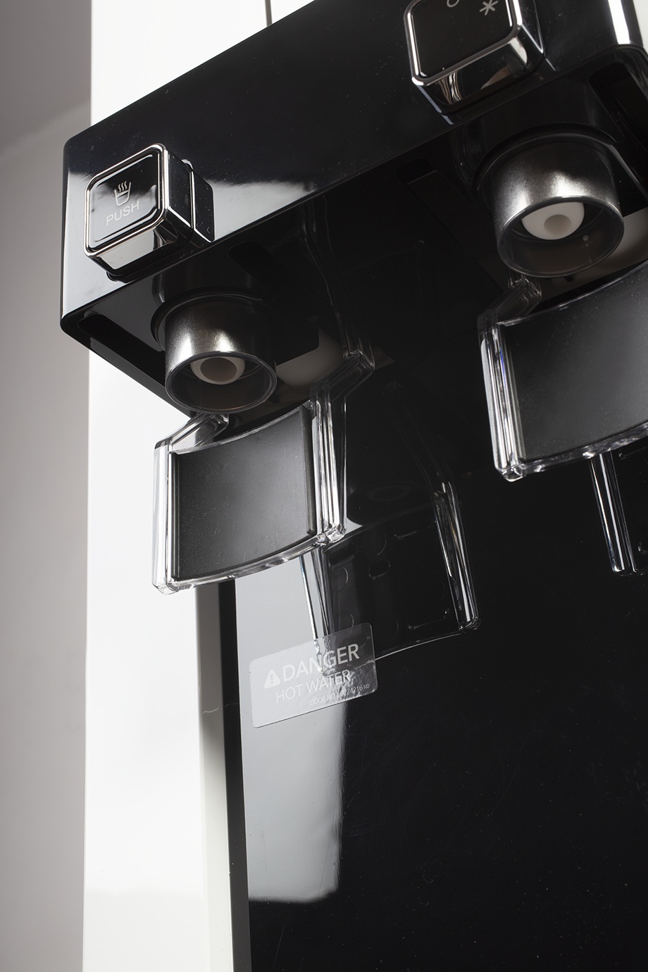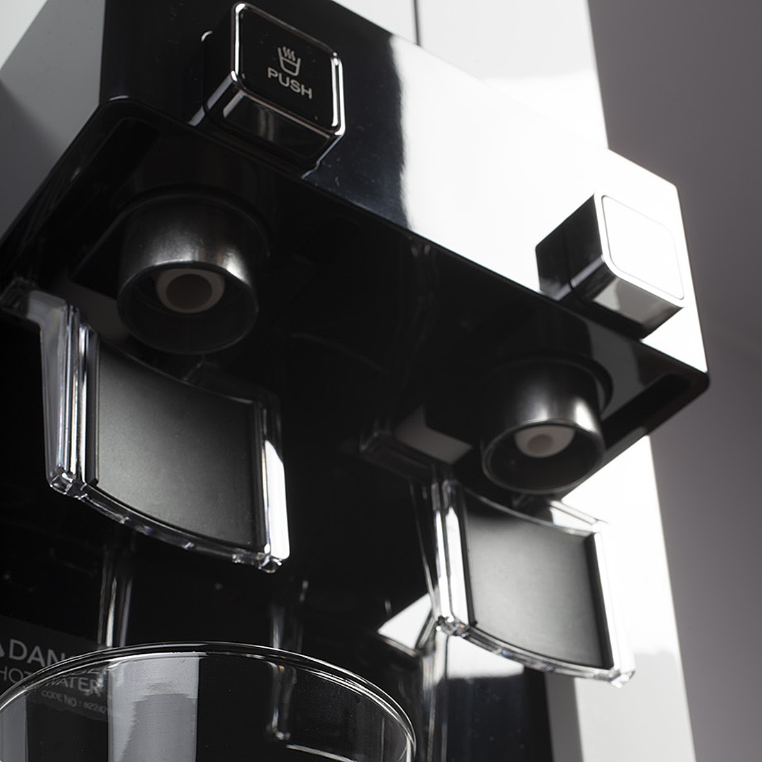 Nowoczesny design i kolumnowa budowa sprawiają, że dystrybutor świetnie wpasuje się w każdą przestrzeń. Minimalistyczny pulpit sterujący w czytelny sposób informuje o stanie urządzenia, wybranym trybie dozowania czy temperaturze wody ciepłej i zimnej. Ponadto na panelu znajduje się dodatkowy przycisk zabezpieczenia przed przypadkowym uruchomieniem gorącej wody.