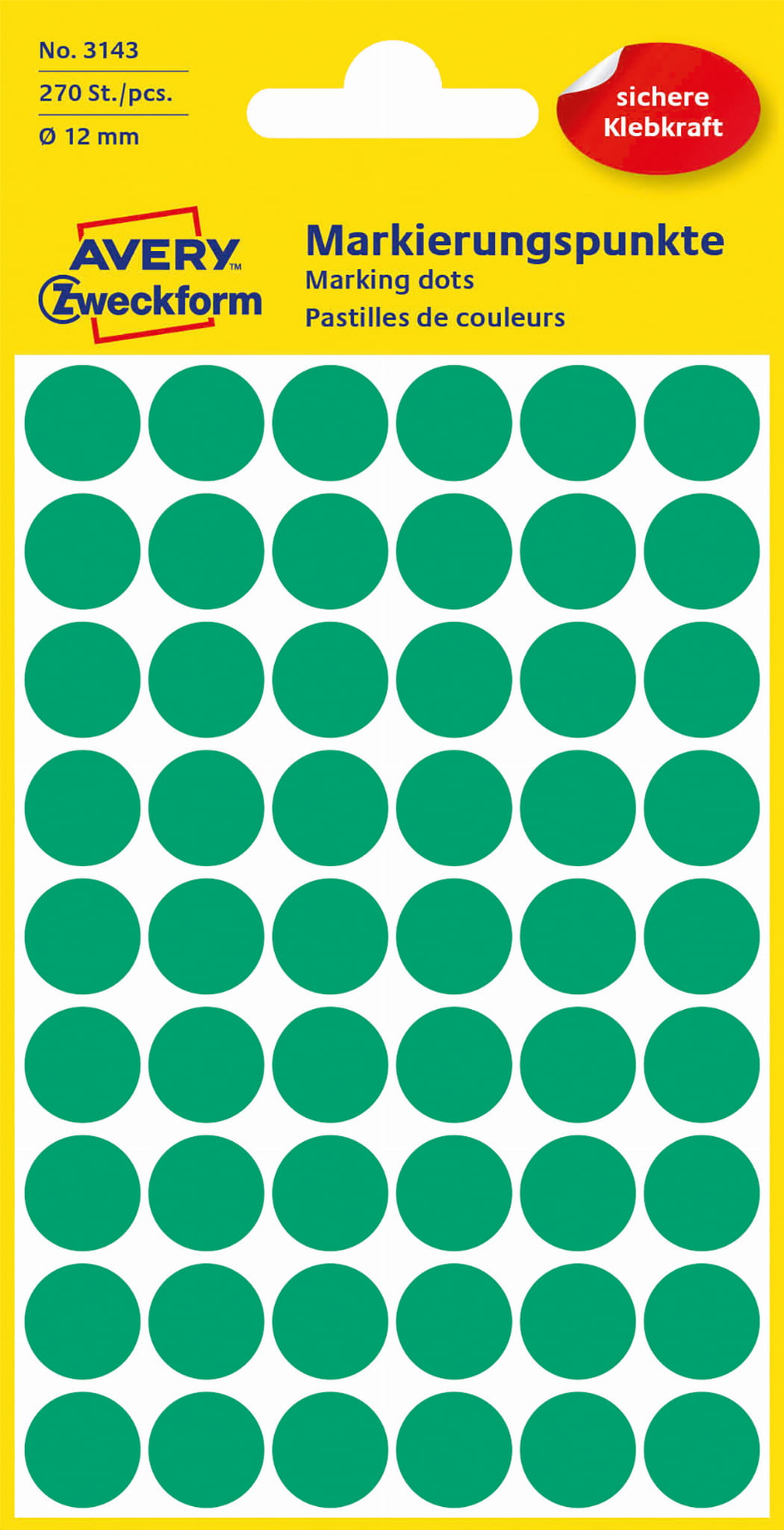 Etykiety Kółka do zaznaczania AVERY Zweckform 3143 - ⌀ 12 mm, 5 arkuszy - 270 kółek - znaczników - zielone