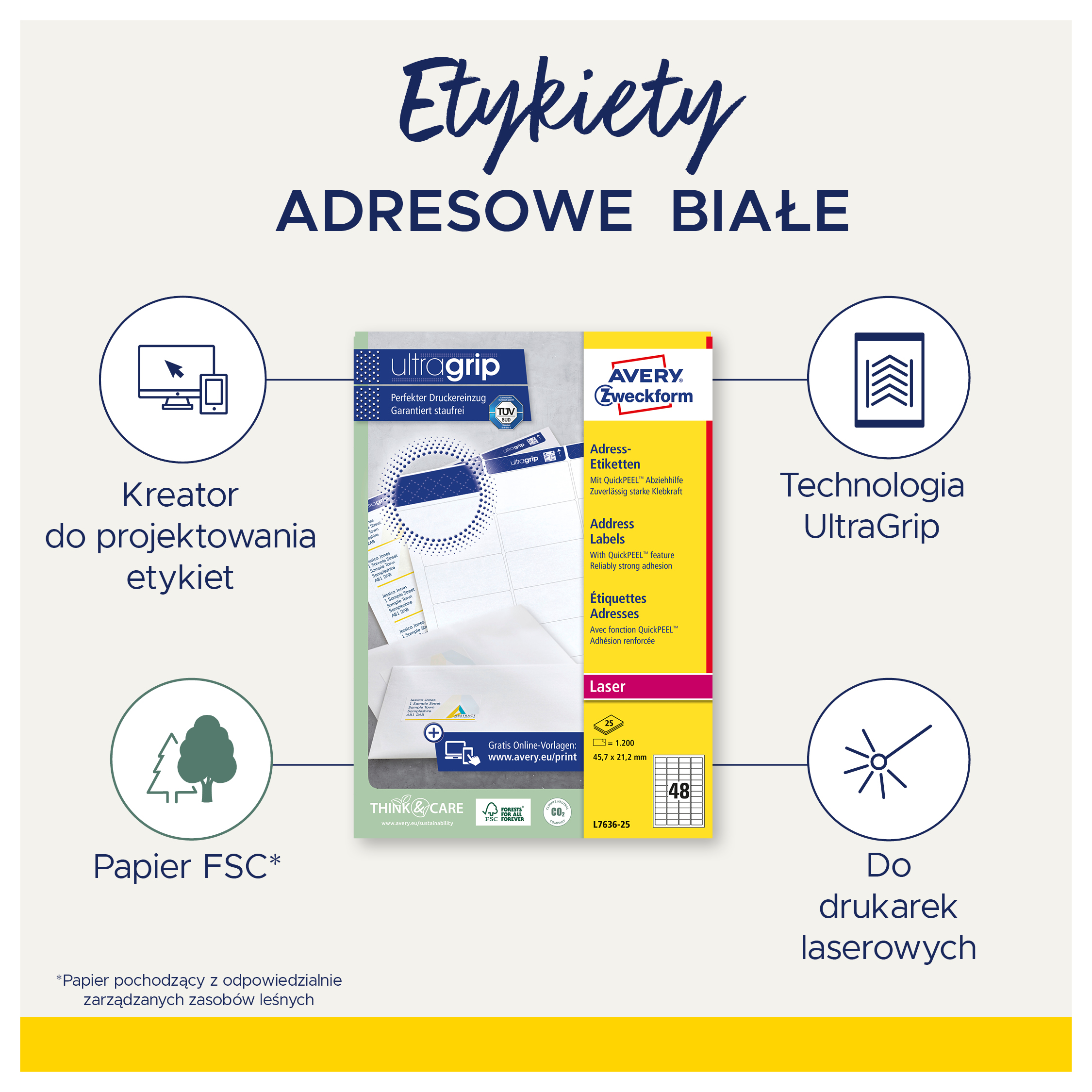 • Oszczędzaj czas z darmowymi i łatwymi w użyciu szablonami Avery Zweckform oraz oprogramowaniem dostępnym na stronie www.avery-zweckform.pl