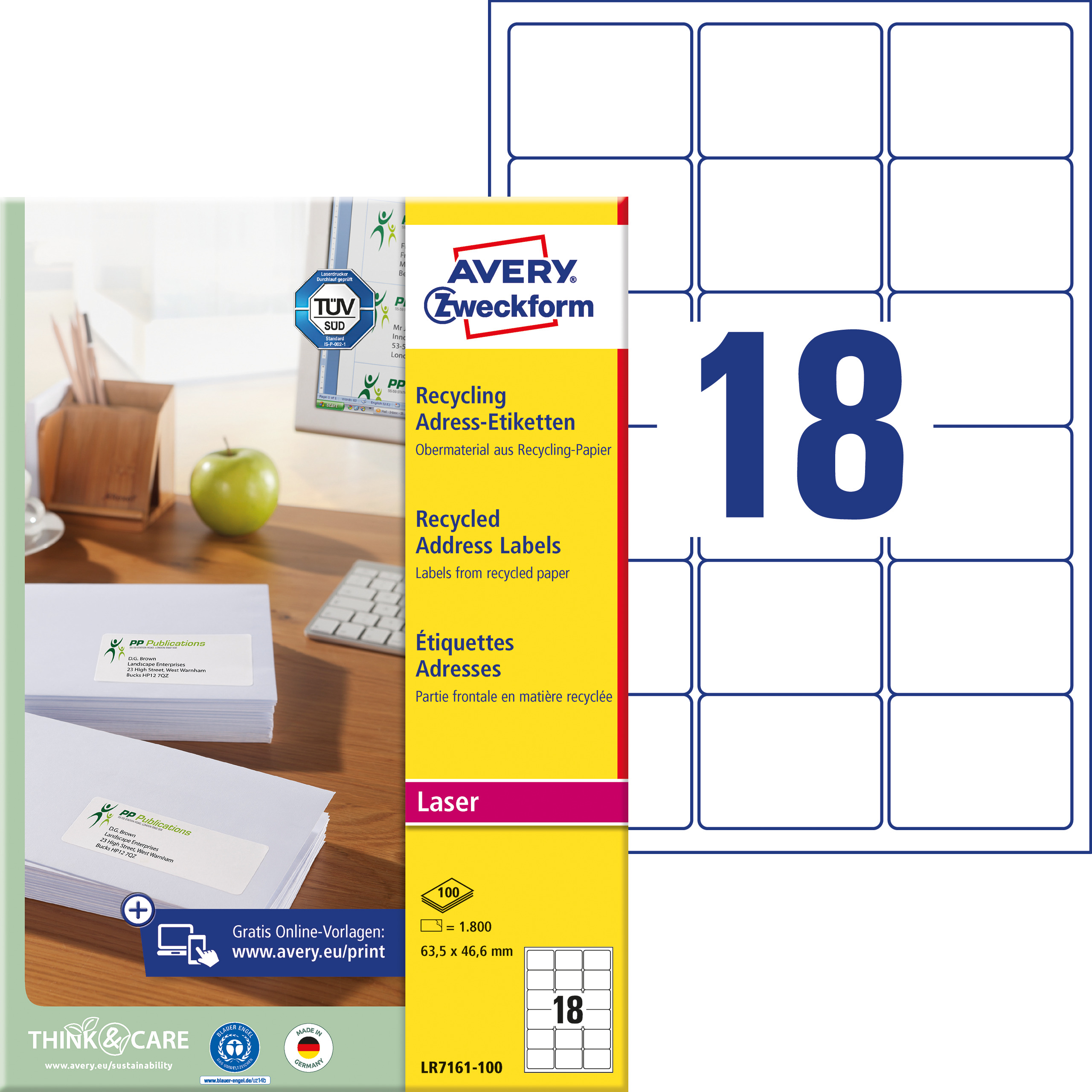 Etykiety adresowe Avery LR7161-100 - 63,5 x 46,6 mm, 100 arkuszy - złamana biel