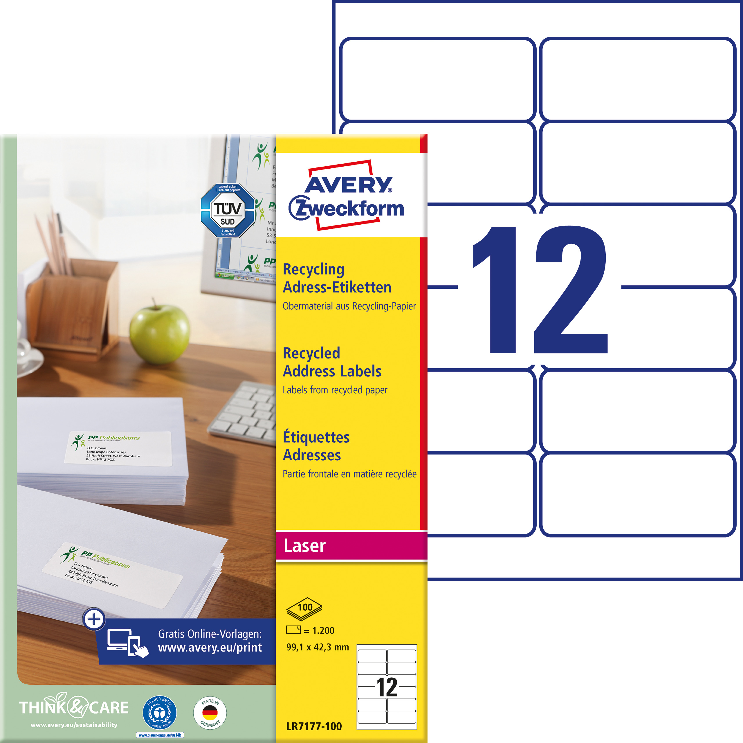Etykiety adresowe Avery LR7177-100 - 99,1 x 42,3 mm, 100 arkuszy - złamana biel
