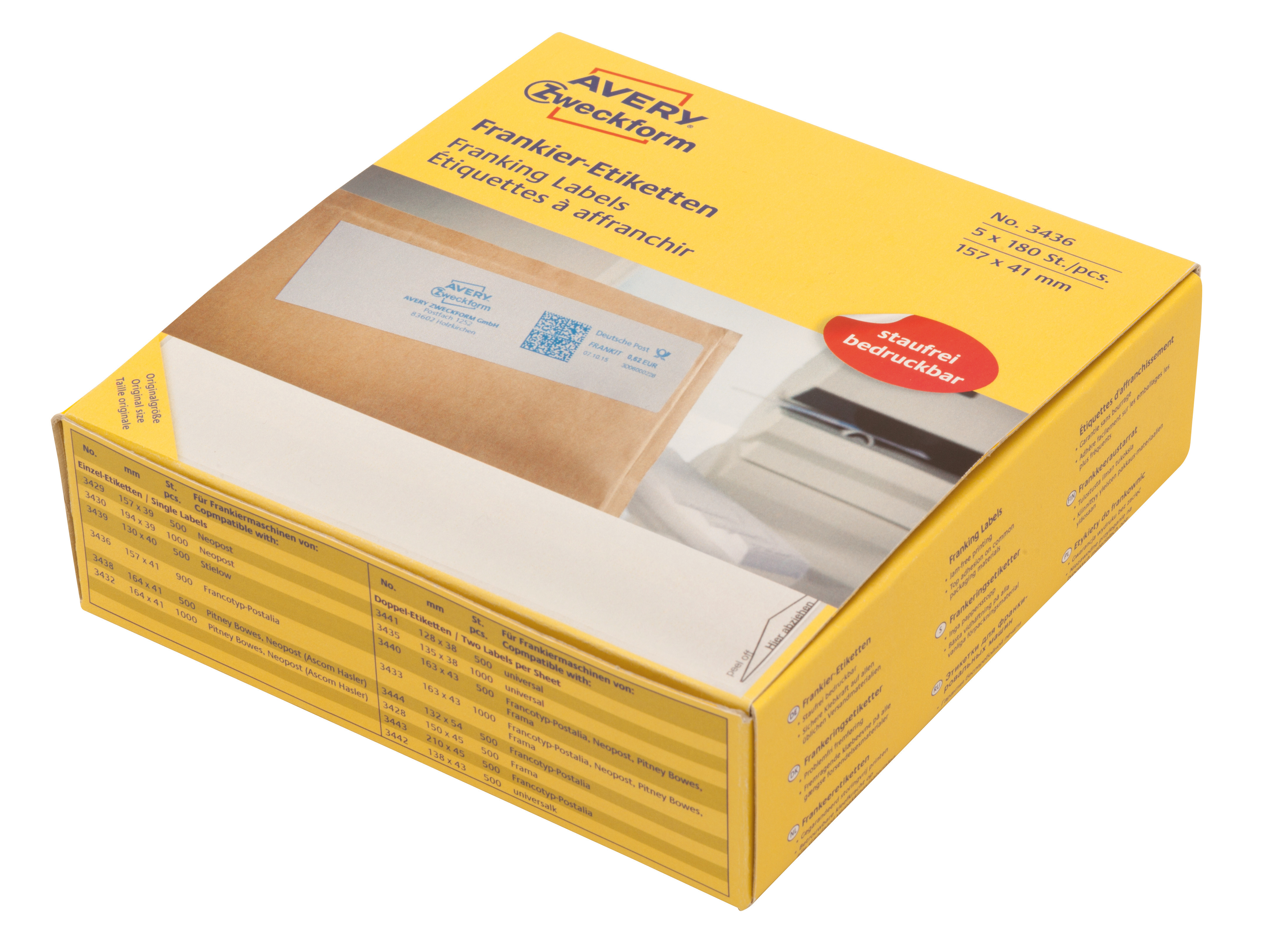 Etykiety adresowe do frankownic AV3436 - 157 x 41 mm, 5 x 180 etykiet - biały