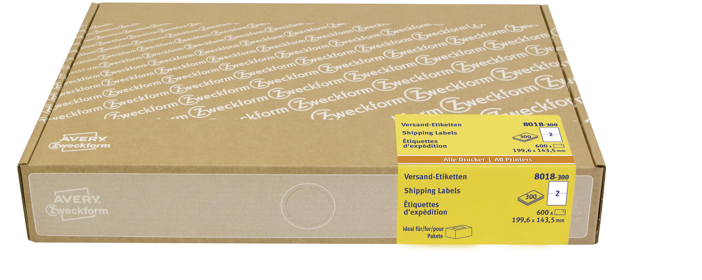 Etykiety na paczki Avery 8018-300 - 199,6 x 143,5 mm, 300 arkuszy - biały