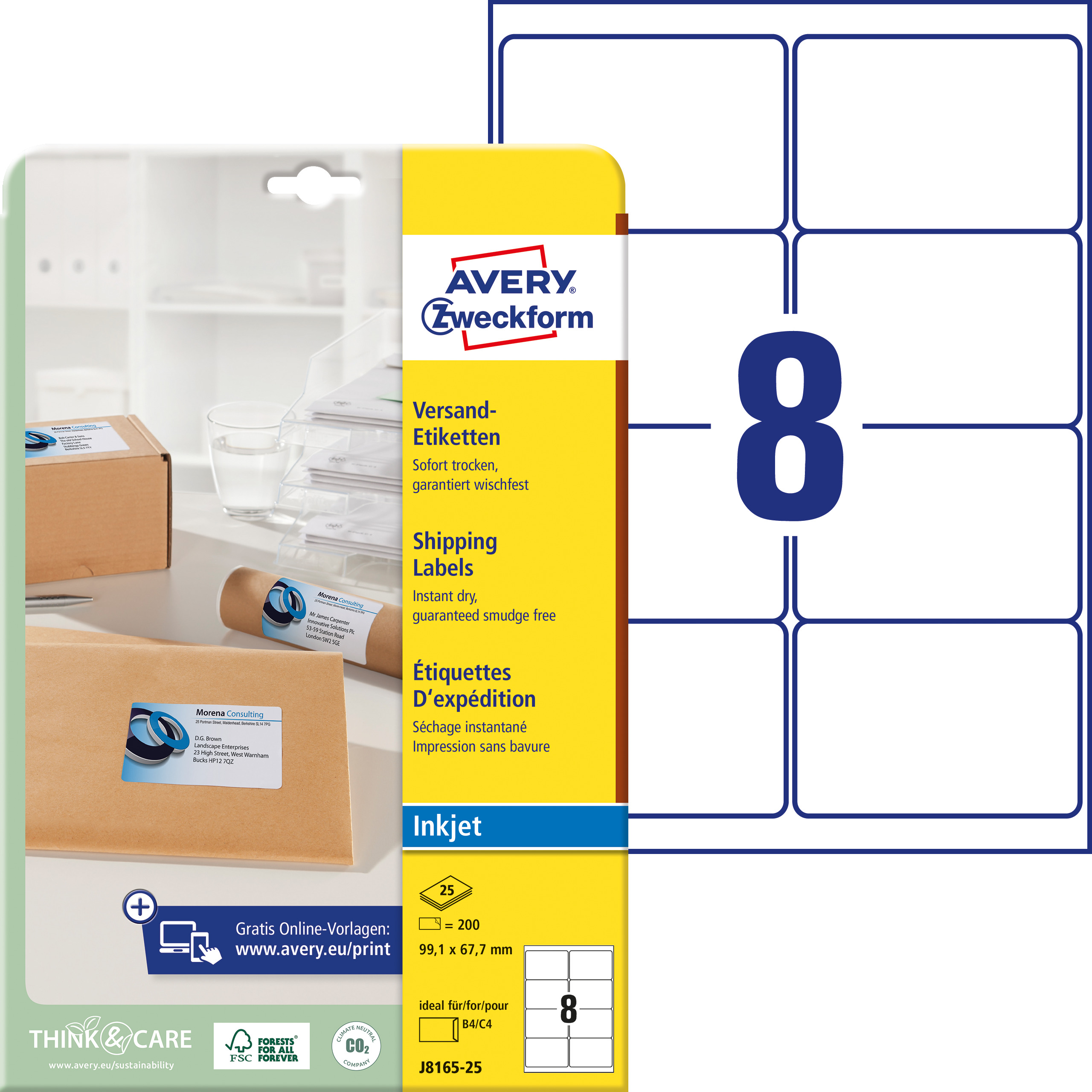 Etykiety na paczki Avery J8165-25 - 99,1 x 67,7 mm, 25 arkuszy - biały