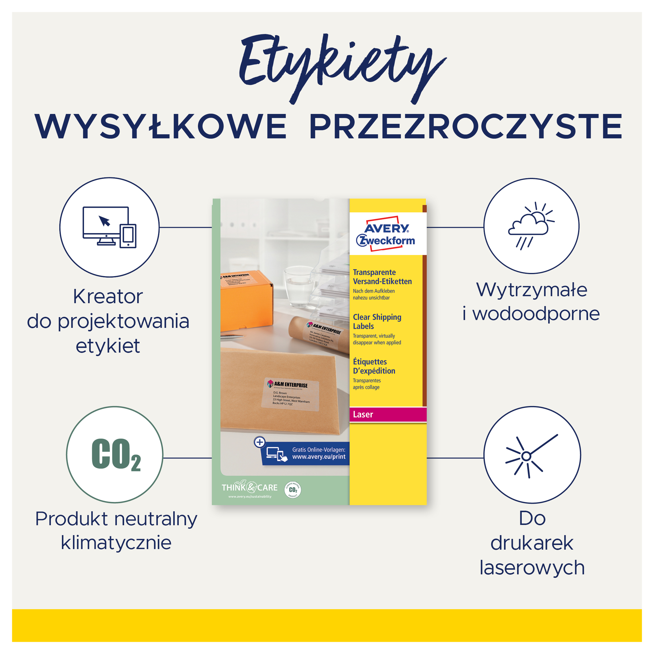 Etykiety na paczki Avery L7567-25 - 210 x 297 mm, 25 arkuszy - przeźroczysty