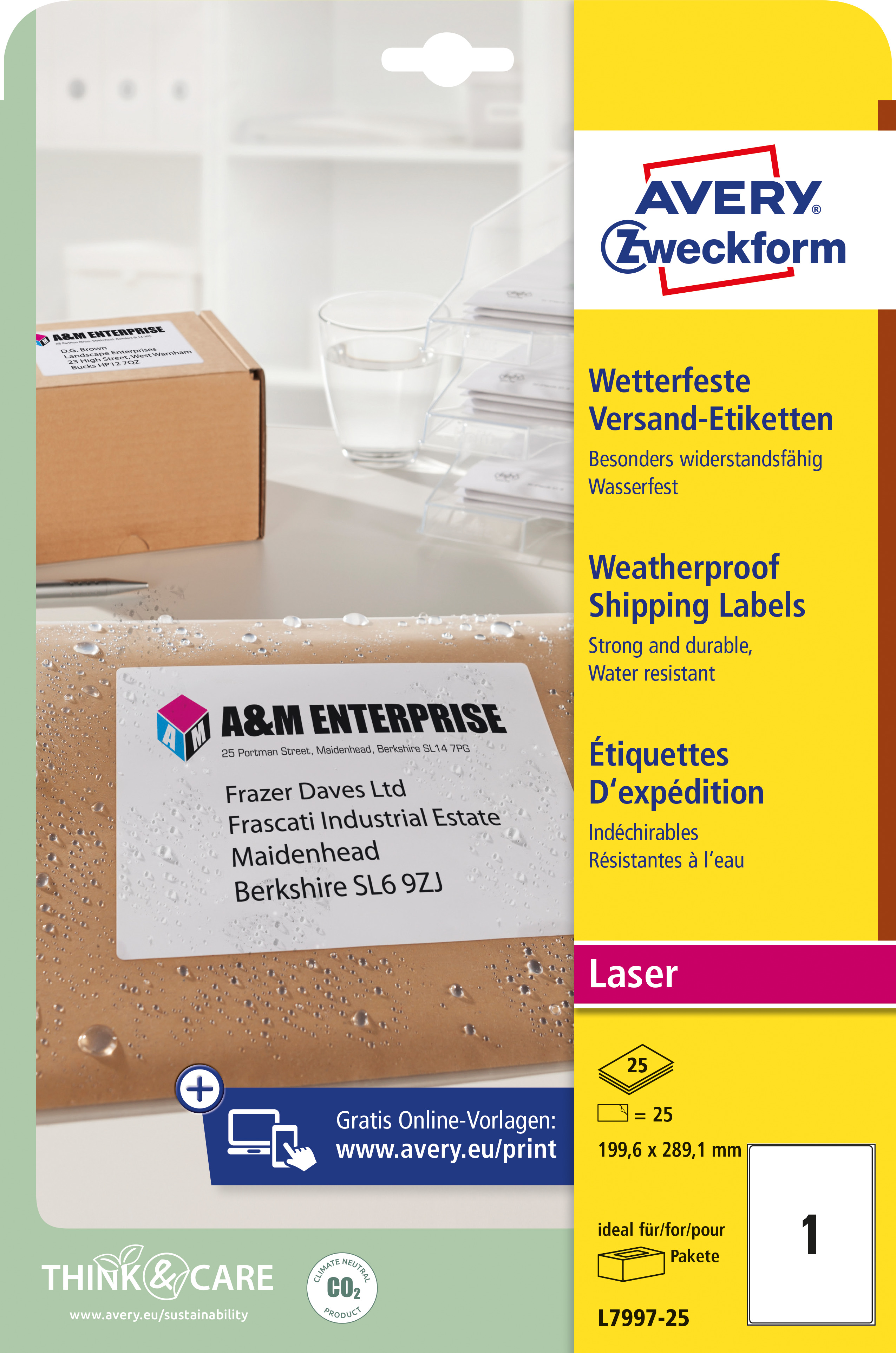 Etykiety na paczki Avery L7997-25 - 199,6 x 289,1 mm, 25 arkuszy - biały