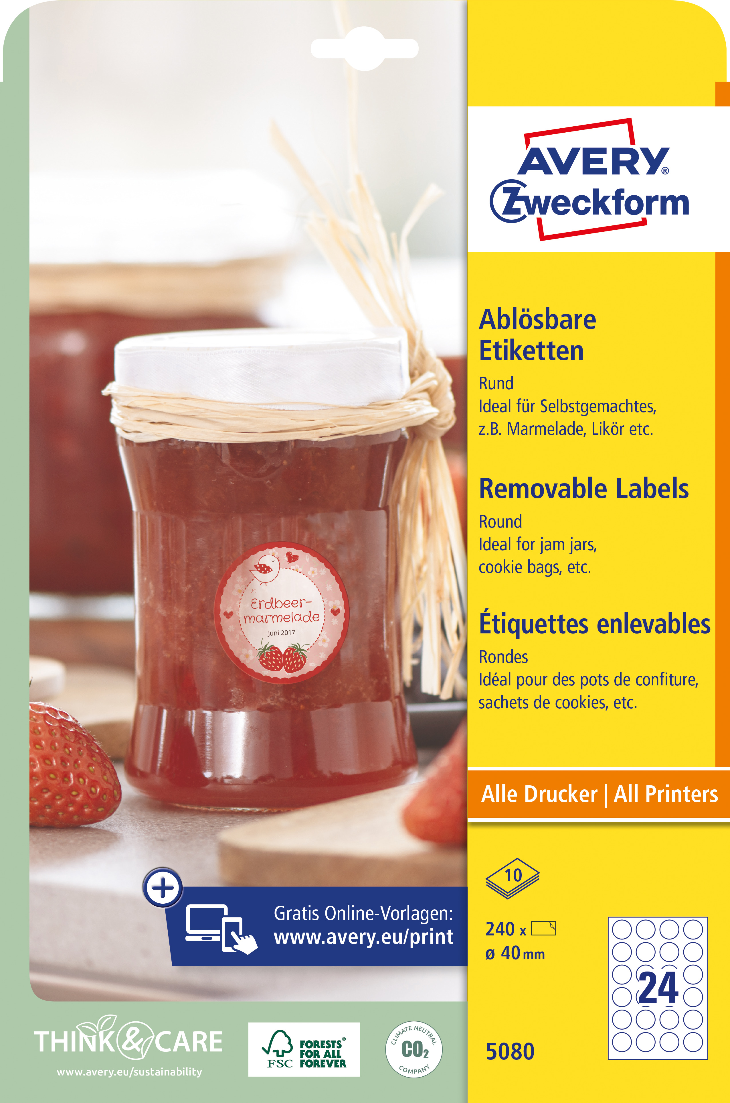 Etykiety papierowe okrągłe Avery 5080 -Ø 40 mm, 10 arkuszy - biały