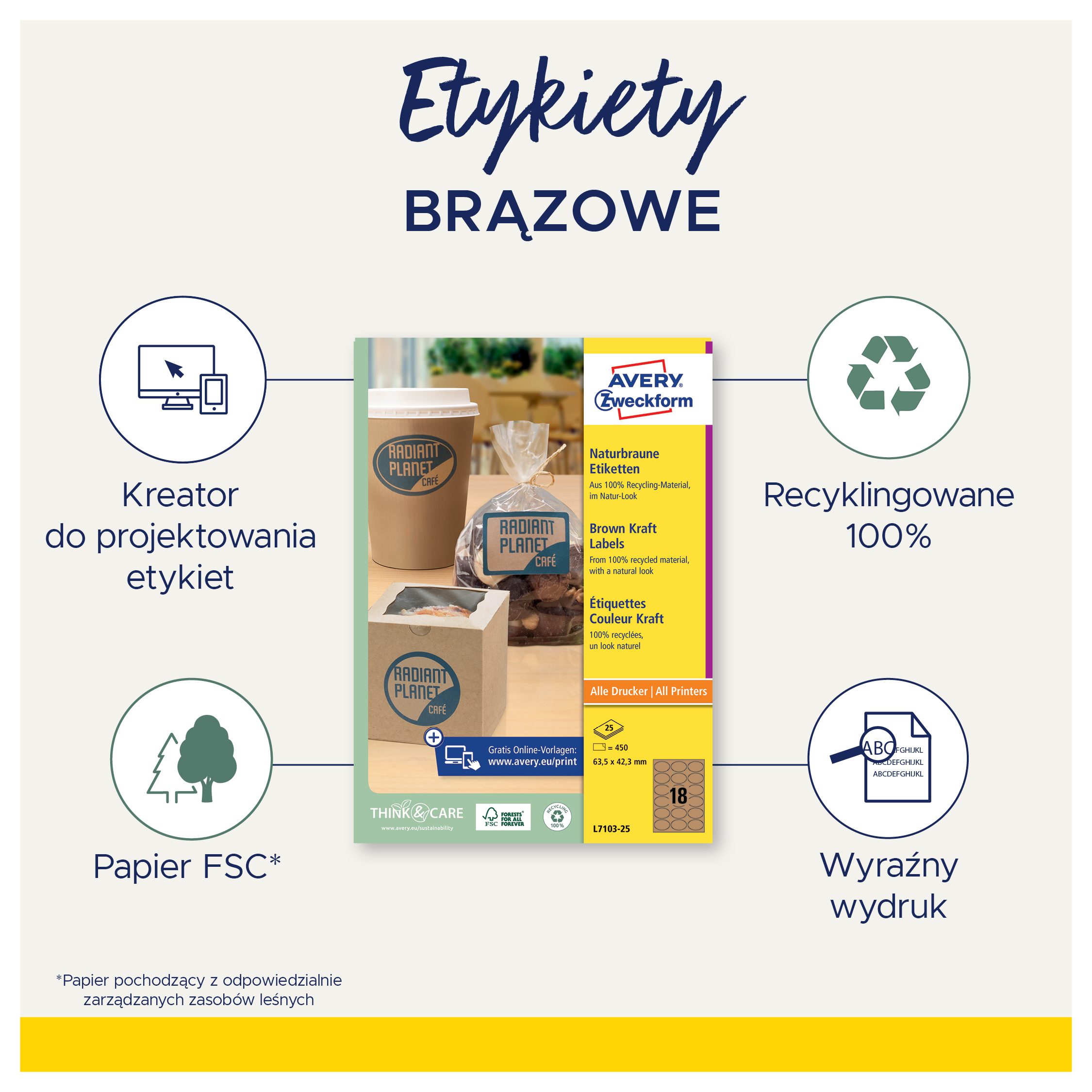 • Darmowe i łatwe w użyciu szablony oraz oprogramowanie do projektowania etykiet jest dostępne na stronie www.avery-zweckform.pl