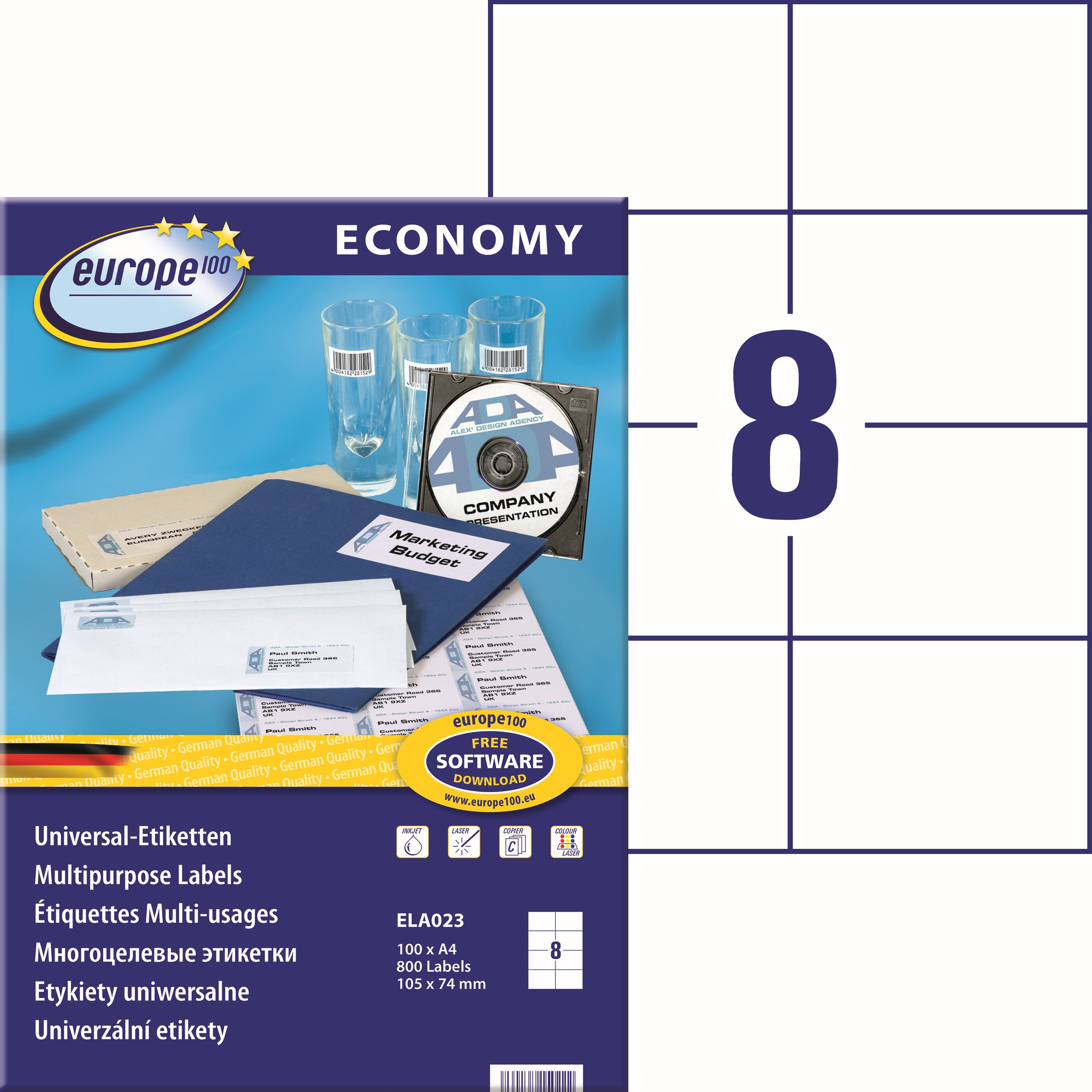 Etykiety uniwersalne Economy Europe100 by Avery Zweckform, A4, 100 ark./op., 105 x 74 mm, białe