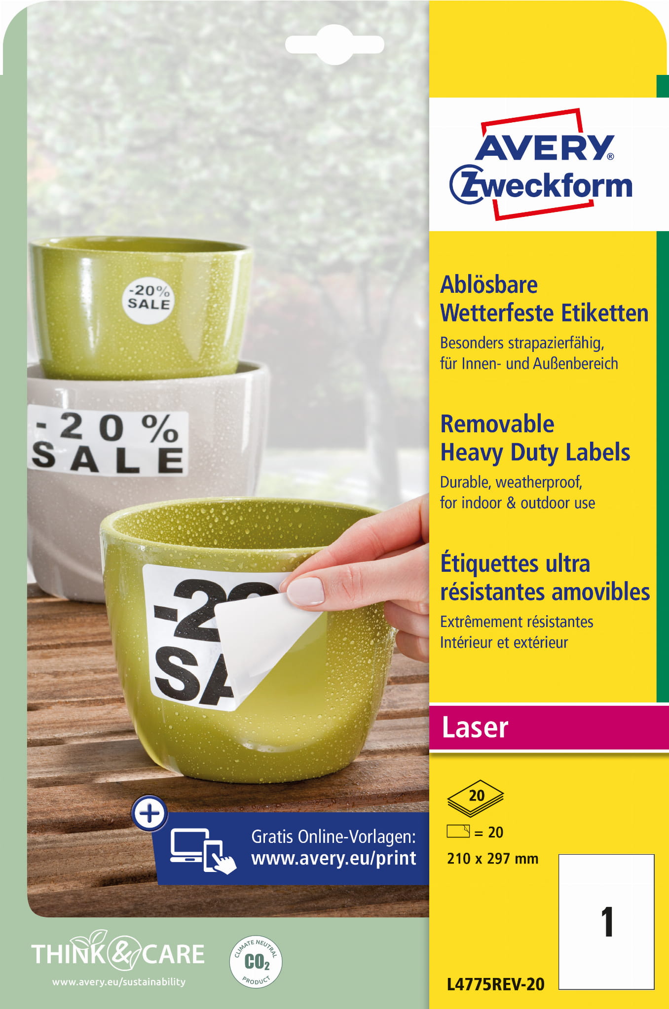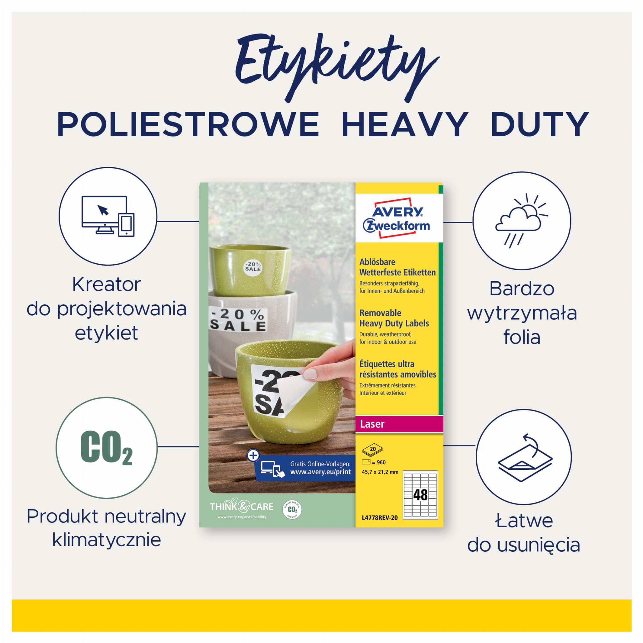 Etykiety wodoodporne usuwalne Avery Zweckform L4775REV-20, Heavy Duty - 210x297 mm A4, 20 arkuszy - białe