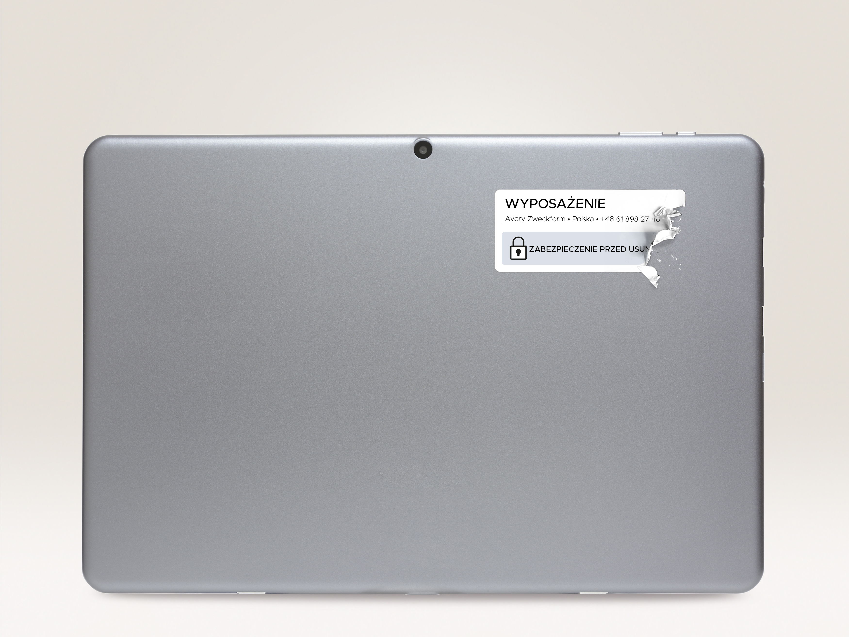 • Zabezpieczają mienie osobiste, podczas próby usunięcia etykieta łuszczy się pozostawiając widoczne ślady.