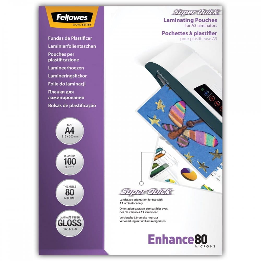Fellowes Folia do laminowania błyszcząca Super Quick A4 80 mikronów / 100szt