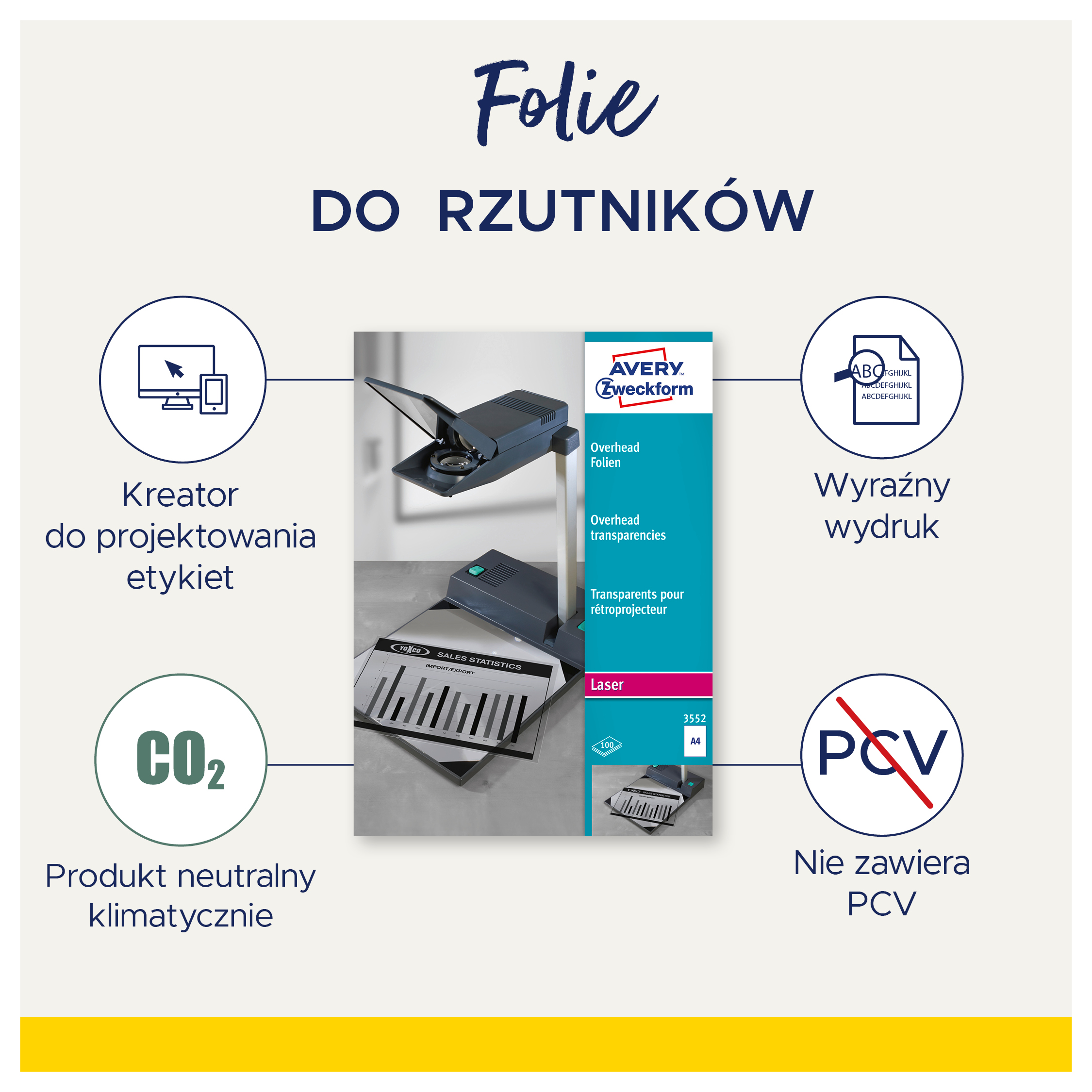 Folia projekcyjna przeźroczysta, powlekana A4, Avery 3561 / , 50 szt., grubość 0,13 mm - przeźroczysty
