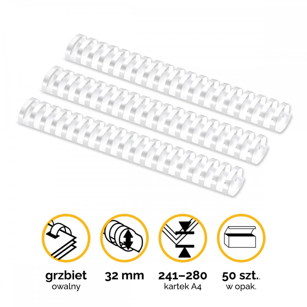 Grzbiety plastikowe do bindowania 28mm (201-240 kartek) A4/50szt - kolor BIAŁY - Fellowes