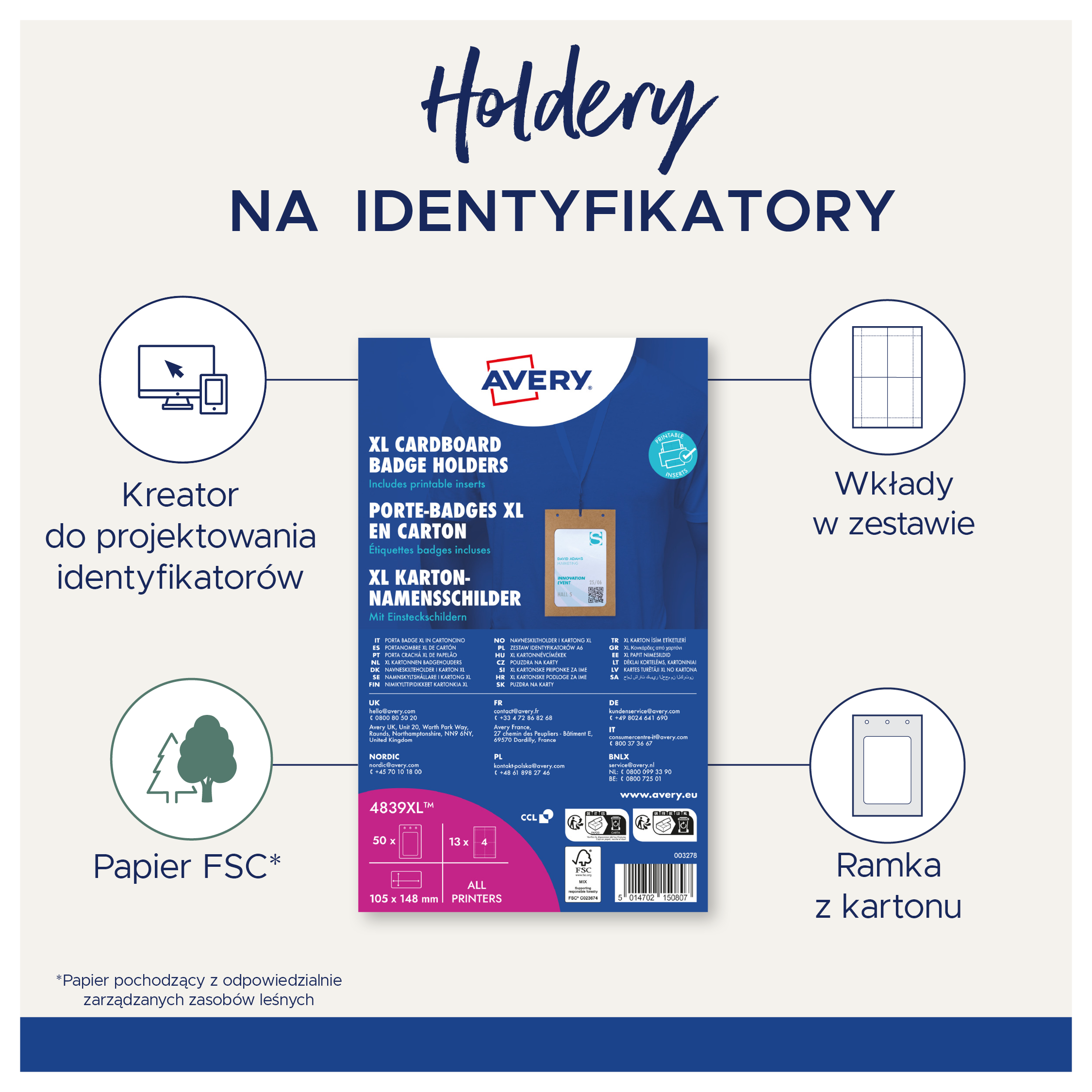 Identyfikator targowy Ekologiczny AVERY - opakowanie 50 sztuk - Tekturowe holdery na identyfikatory XL z wkładami
