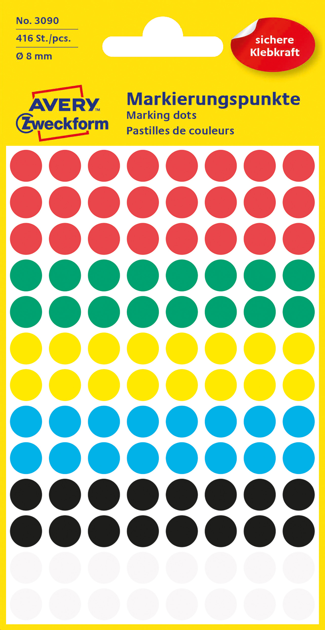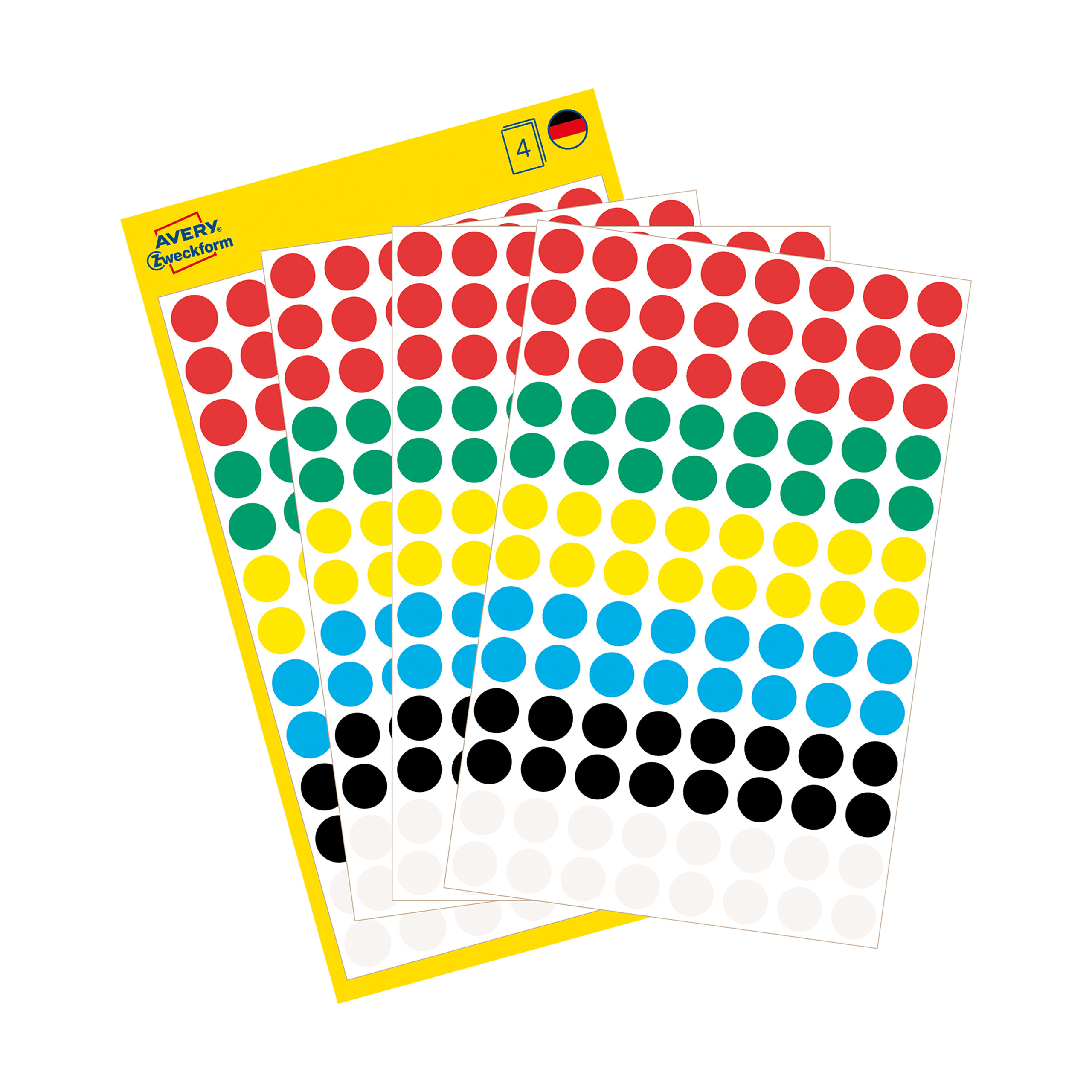 Kółka do zaznaczania Avery 3090 - Ø 8 mm, 416 etyk., 4 arkusze - wielokolorowy