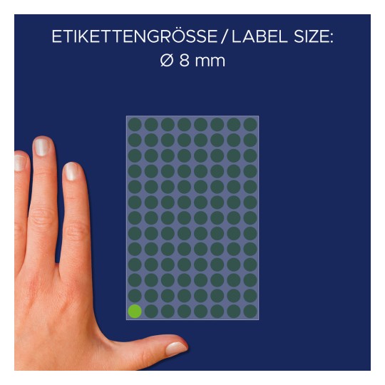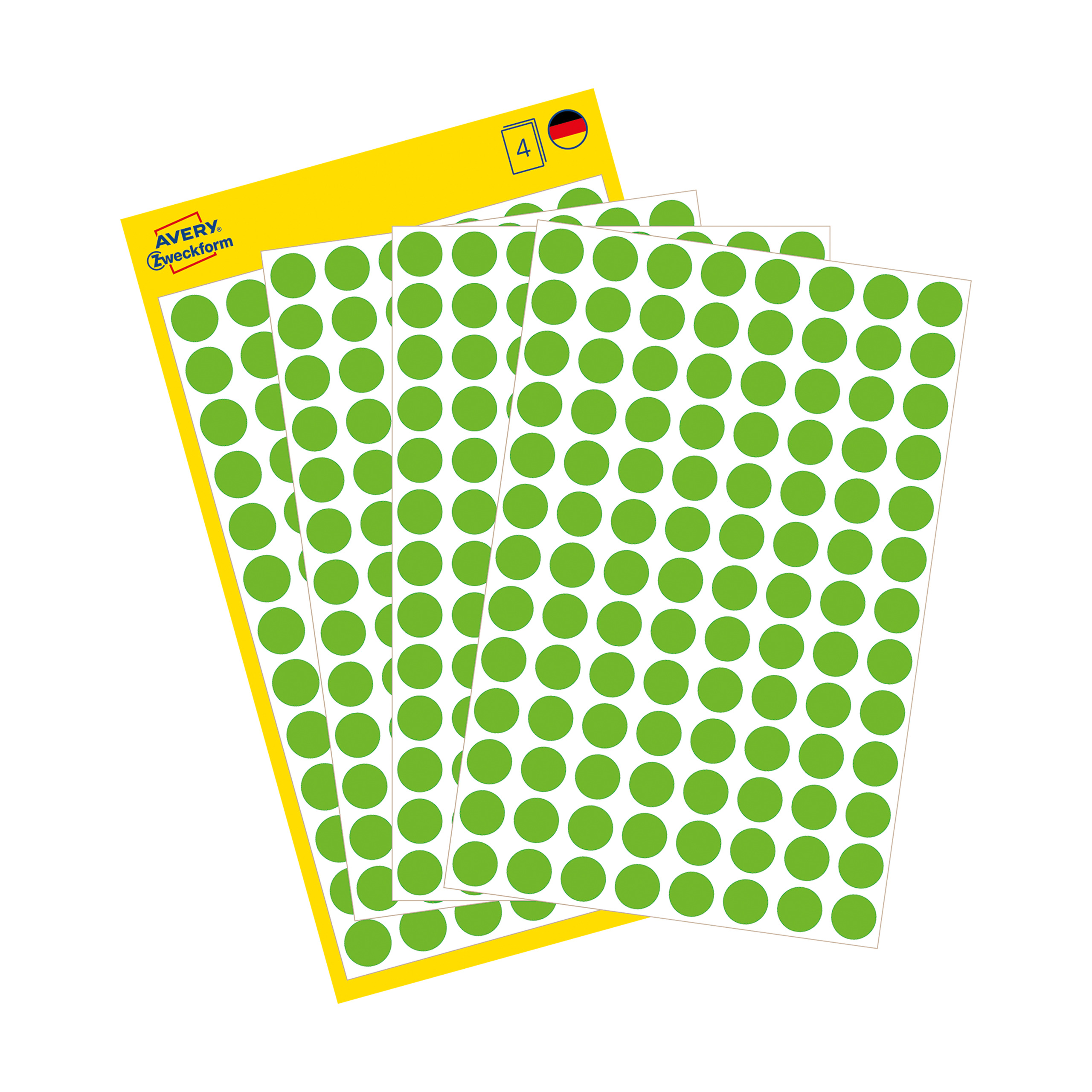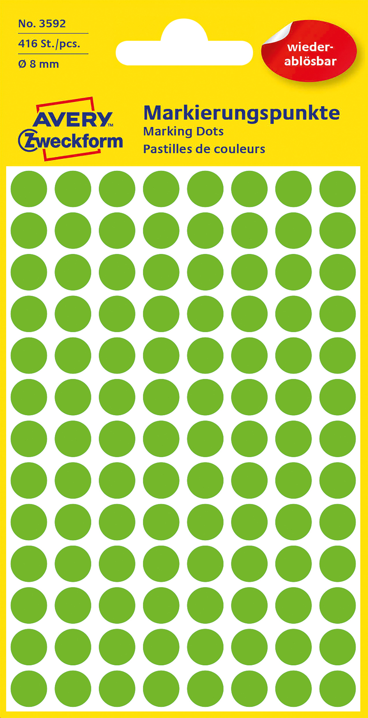 Kółka do zaznaczania usuwalne Avery 3592 - Ø 8 mm, 416 etyk., 4 arkusze - zielony