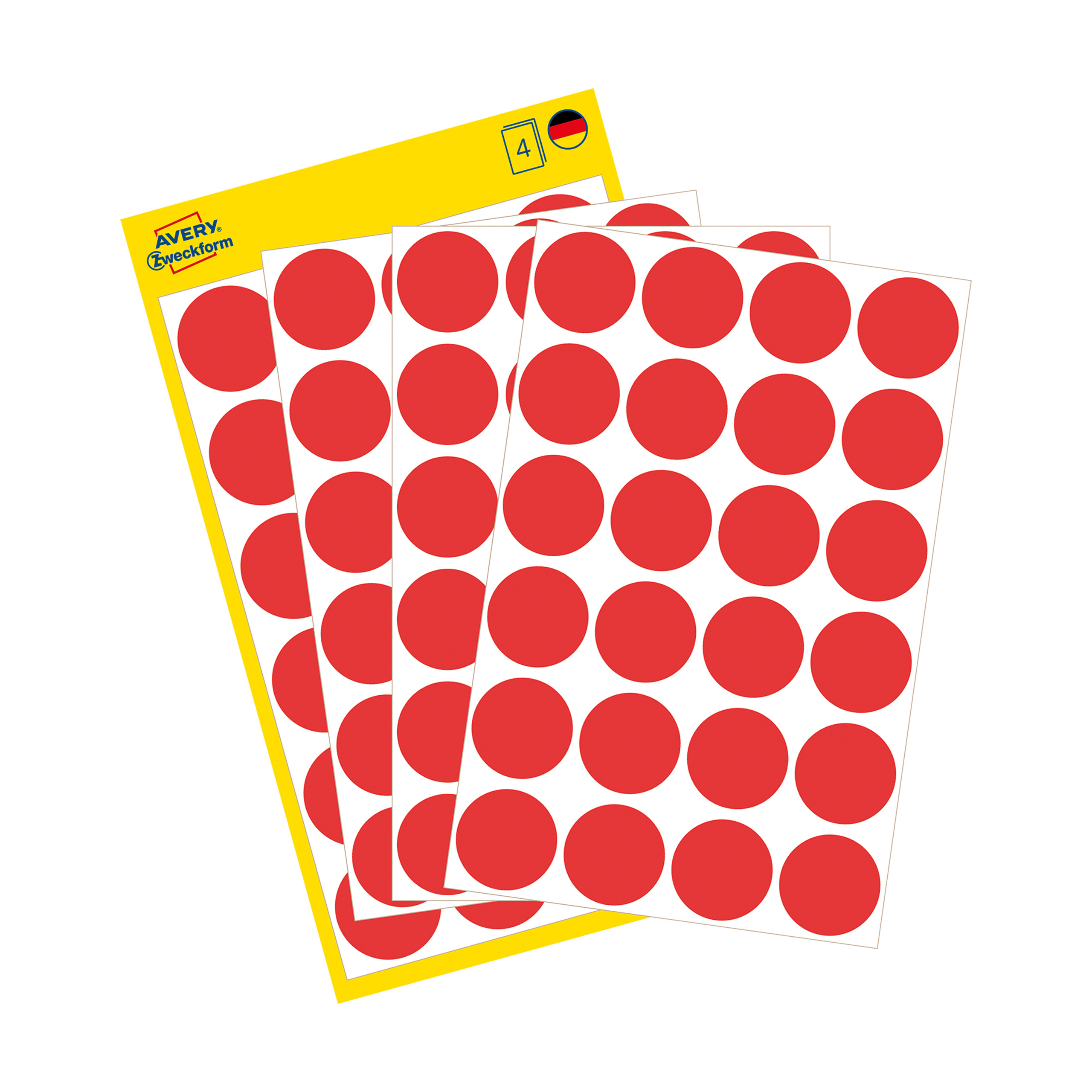 Kółka do zaznaczania Avery 3595 - Ø 18 mm, 96 etyk., 4 arkusze - czerwony
