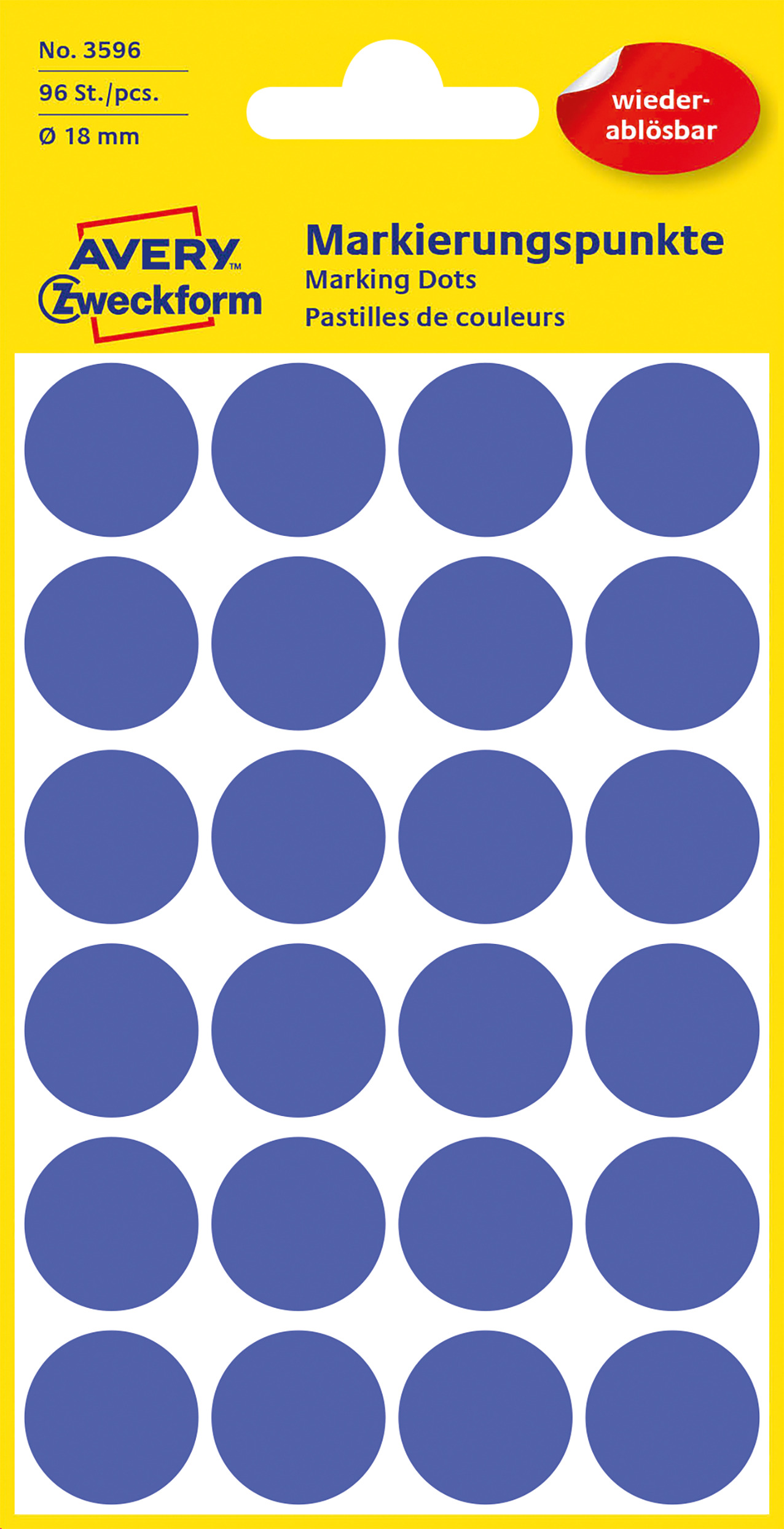 Kółka do zaznaczania Avery 3596 - Ø 18 mm, 96 etyk., 4 arkusze - niebieski