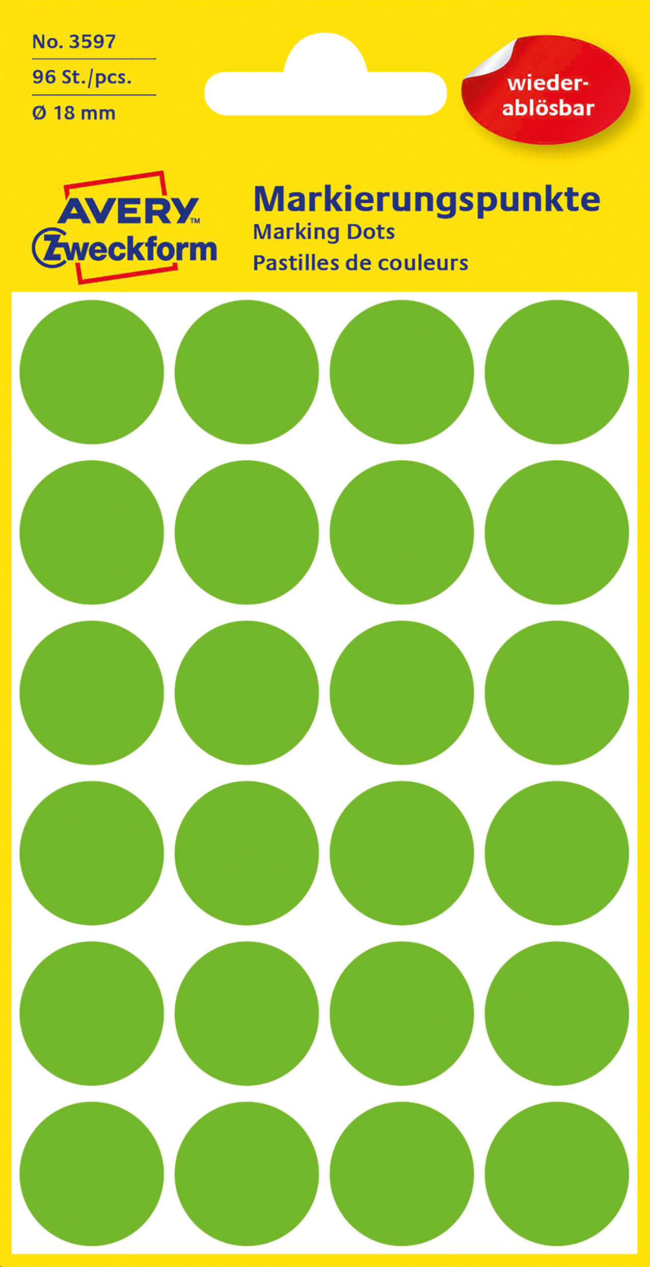 Kółka do zaznaczania Avery 3597 - Ø 18 mm, 96 etyk., 4 arkusze - zielony