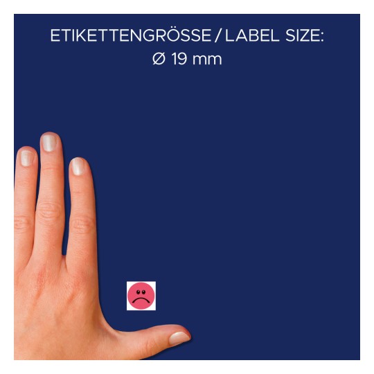 Kółka do zaznaczania w dyspenserze Smutna buźka Avery 3859 - Ø 19 mm, 250 szt., 1 rolka - czerwony
