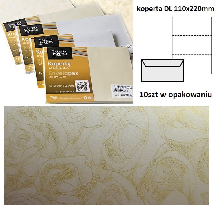 Koperta / koperty ozdobne DL - MILLENIUM KREMOWY opk 10szt 120g/m2