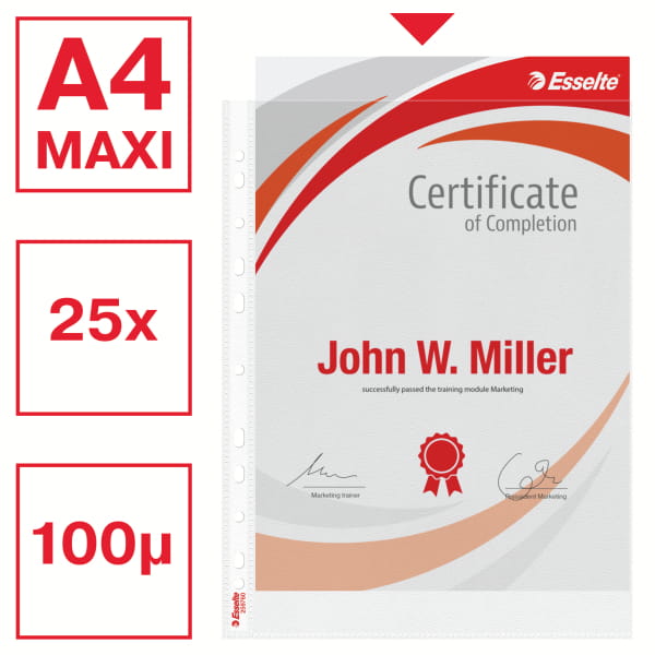Koszulki na dokumenty Esselte A4 Maxi, w 30% z przedużytkowego tworzywa z odzysku - 100mic /opk 25szt - groszkowe