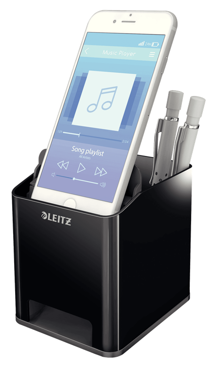 Kubek na długopisy Leitz ze wzmacniaczem dźwięku CZARNY