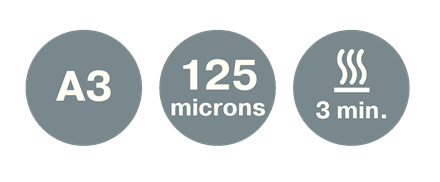 - Umożliwia laminację foliami o grubości od 2 x 75 mikronów do 2 x 125 mikronów.