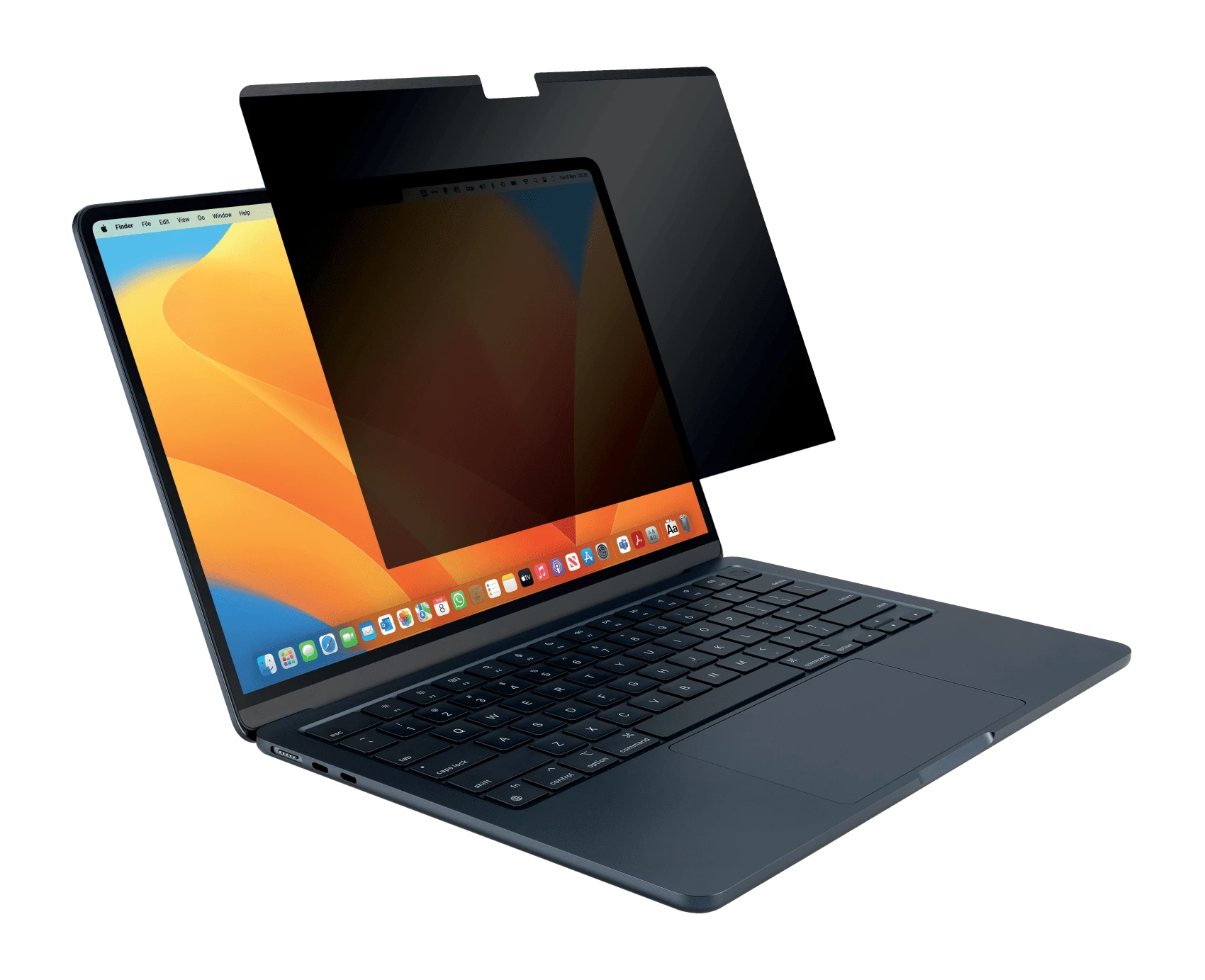 Płaski kształt filtra zapewnia możliwość całkowitego zamknięcia MacBooka Air oraz przejście w tryb uśpienia. Filtr posiada wycięcie na kamerę internetową, zapewniające bezproblemową obsługę połączeń wideokonferencyjnych.