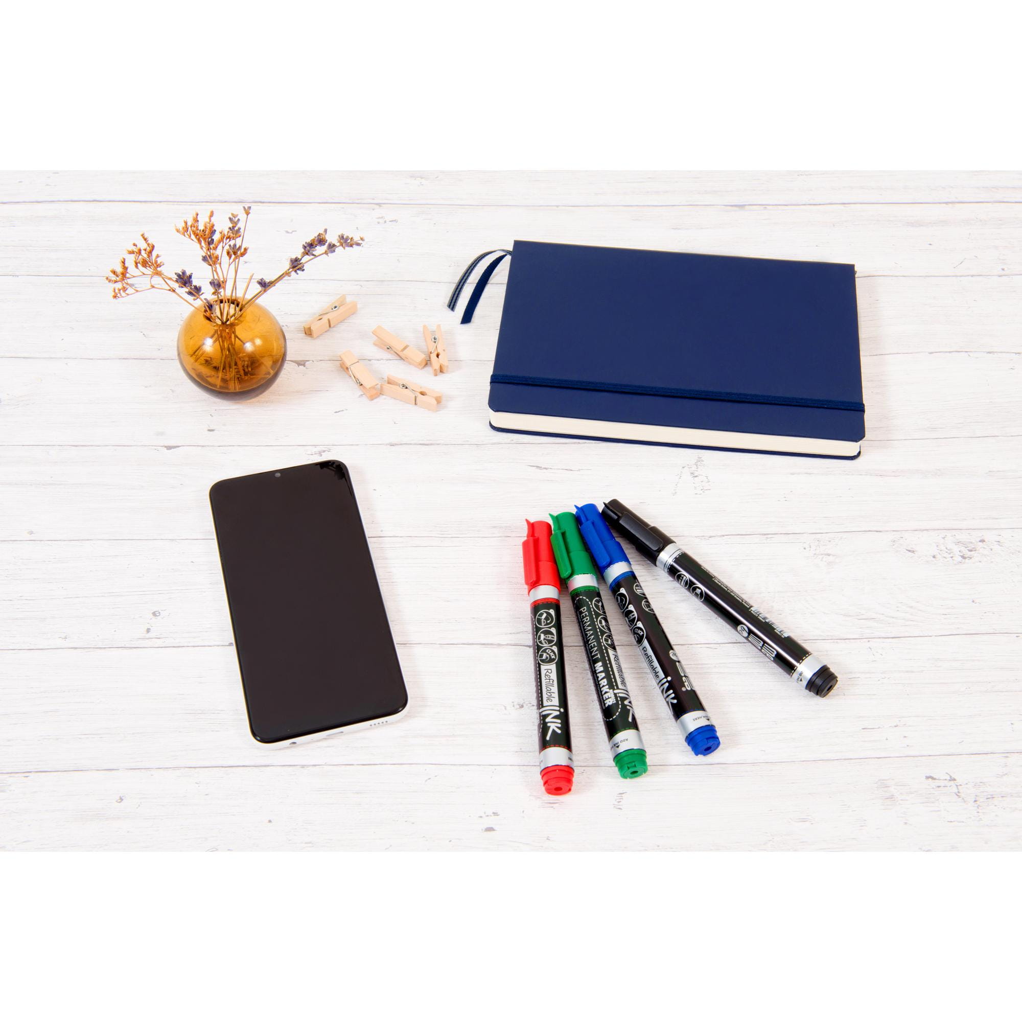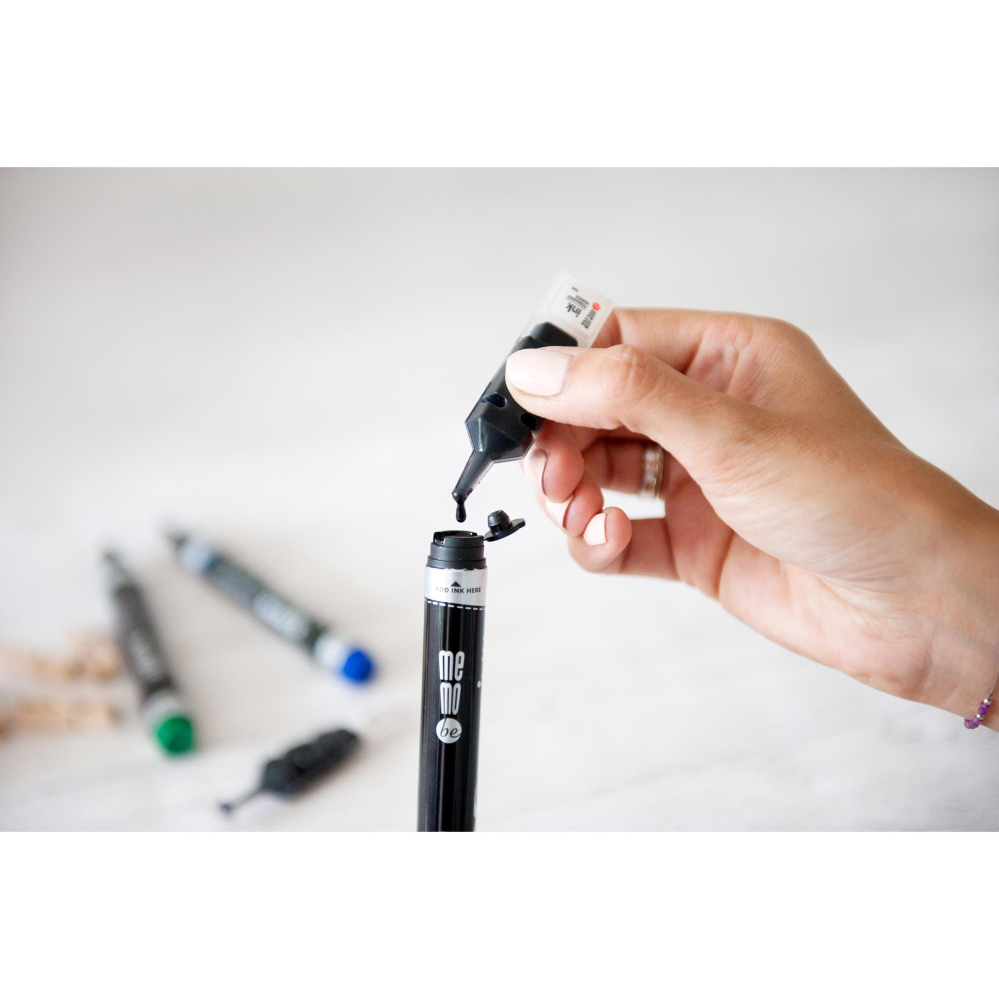 Marker permanentny MemoBe. Doskonały do pisania po gładkich powierzchniach. Trwały tusz na bazie alkoholu odporny na ścieranie. Okrągła końcówka o grubości linii pisania 2-3 mm. Możliwość wymiany tuszu - ekologiczne rozwiązanie. Skuwka ze specjalną końcówką ułatwiającą rozcinanie taśmy, otwieranie kartonów i uzupełnianie tuszu. Czyste i komfortowe ponowne napełnianie. Dostępne 4 kolory: czarny, czerwony, niebieski, zielony