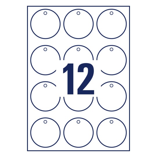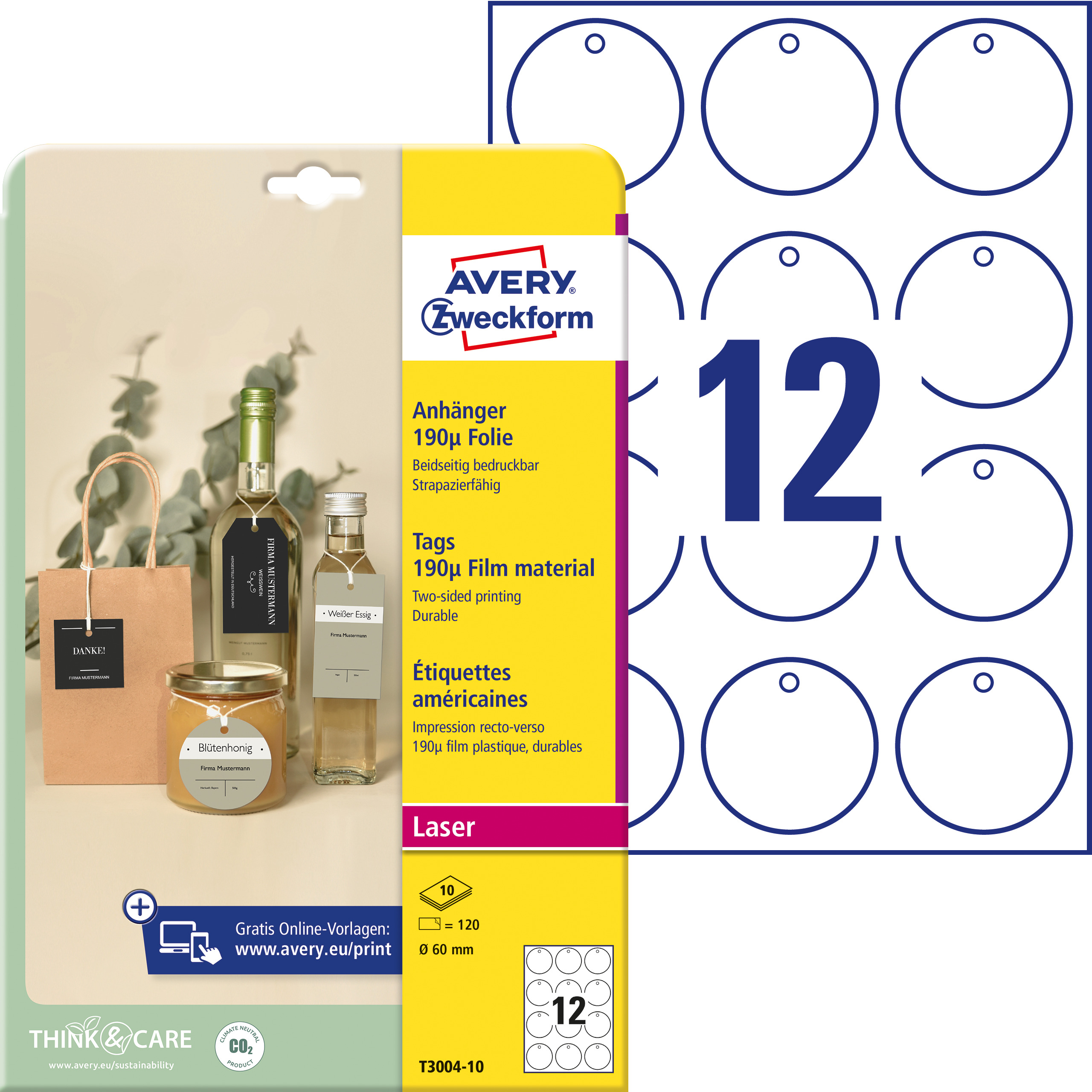 Metki foliowe okrągłe Avery T3004-10 - Ø 60 mm, 190µ, 10 arkuszy - biały