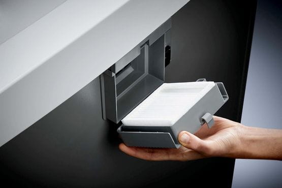 | Unikalny system filtrów DAHLE CleanTEC® redukuje ekspozycję na mikropyłki emitowane przez niszczarki, dbając o czyste powietrze w biurze. | |