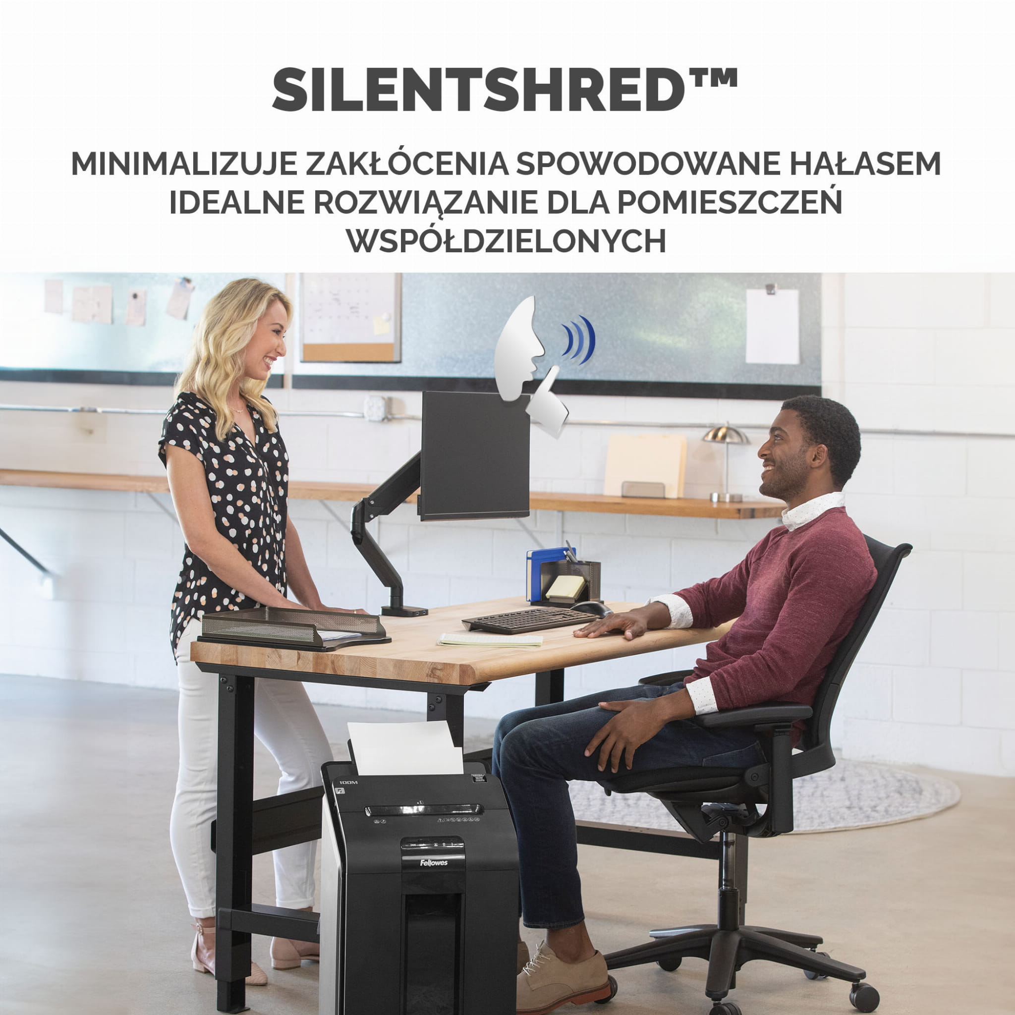 - Cicha dzięki zastosowaniu technologii SilentShred™, idealna do użytku w pomieszczeniach współdzielonych.
