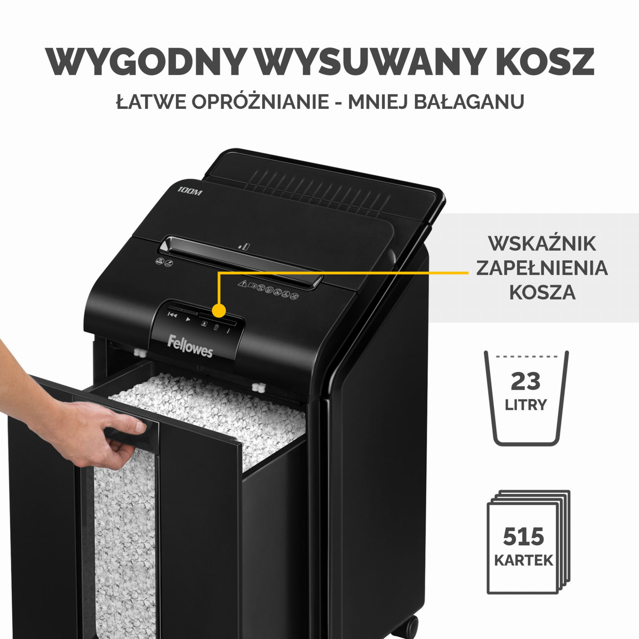 - Bardzo duża wydajność – niszczy automatycznie do 100 kartek.