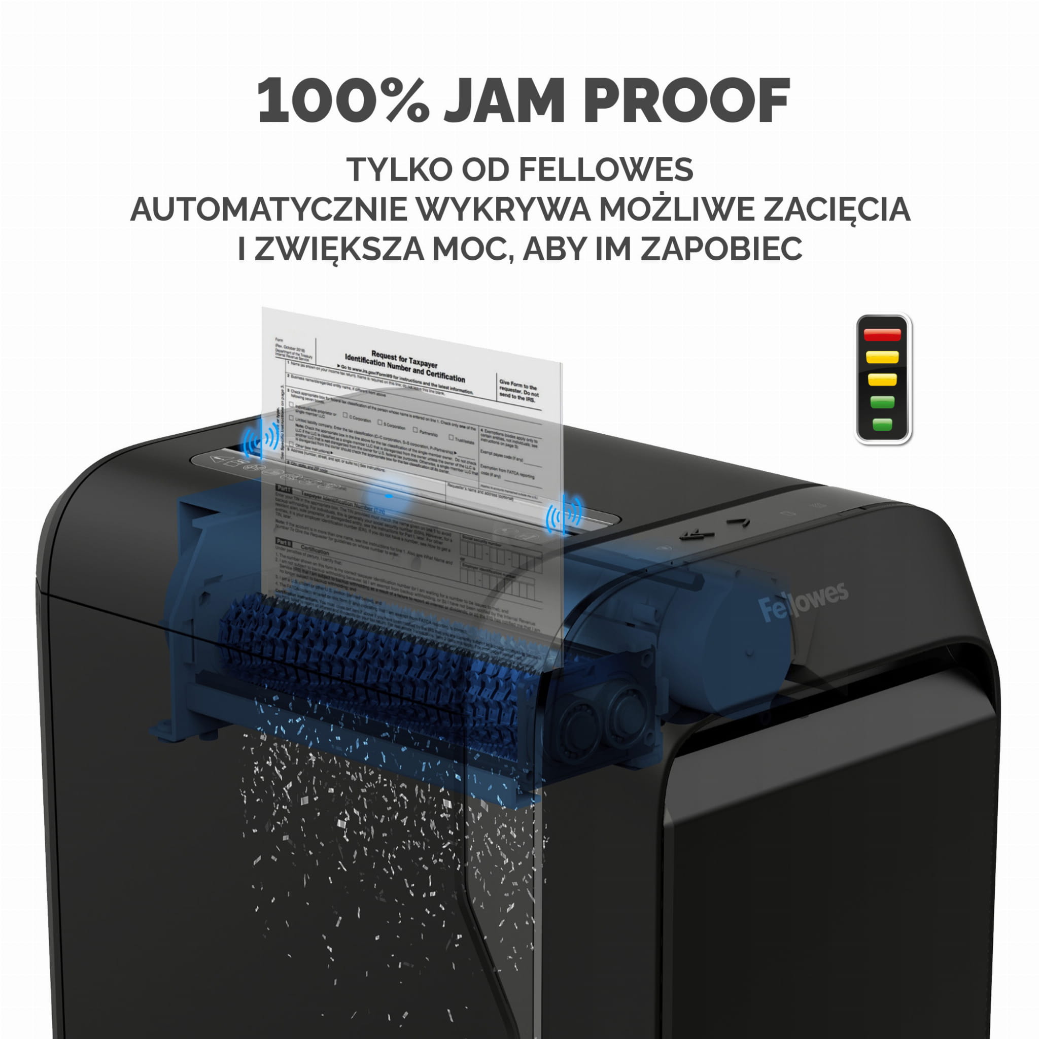 - 100% Jam Proof™. Automatycznie wykrywa możliwe zacięcia i zwiększa moc, aby im zapobiec