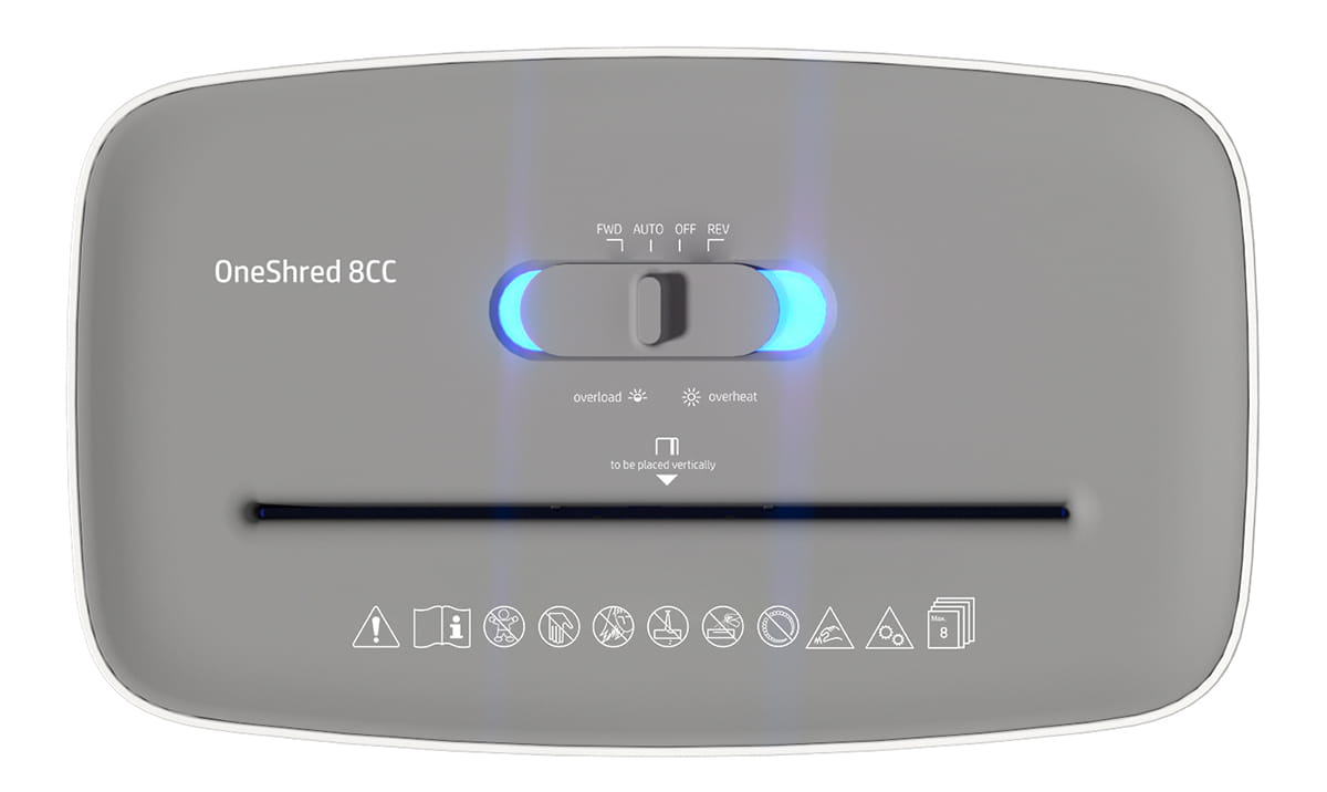 Niszczarka HP ONESHRED 8CC, ścinki, P-4, 8kart., 15l, jasnoszara