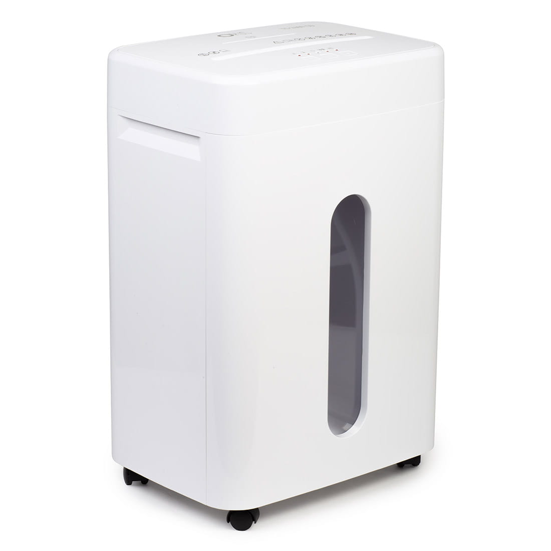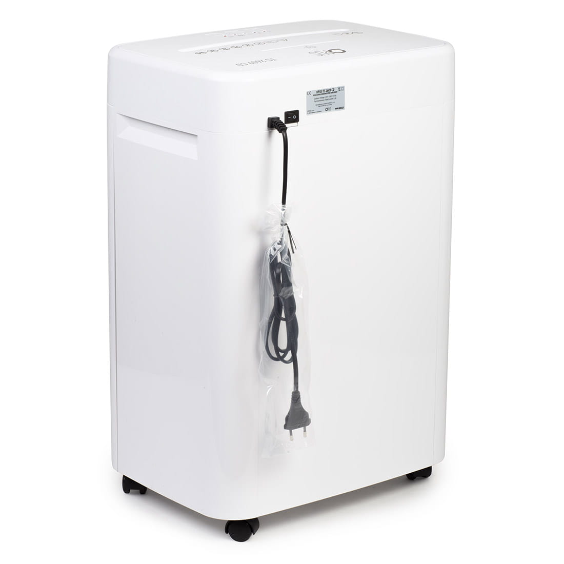 Niszczarka tnąca w systemie paskowo-odcinkowym (cross-cut) w 5 stopniu tajności według DIN 66399. Niszczy 9 kartek papieru.