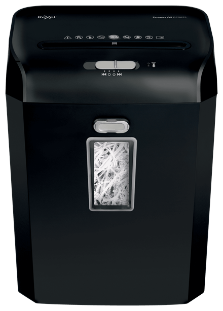 Niszczarka Promax QS RES823 niszczy do 8 kartek (80 gsm) jednocześnie, tnąc je na paski o szerokości 6 mm, co zapewnia poziom bezpieczeństwa P-2. 23-litrowy pojemnik na ścinki zmieści 160 pociętych kartek A4Cechy produktów