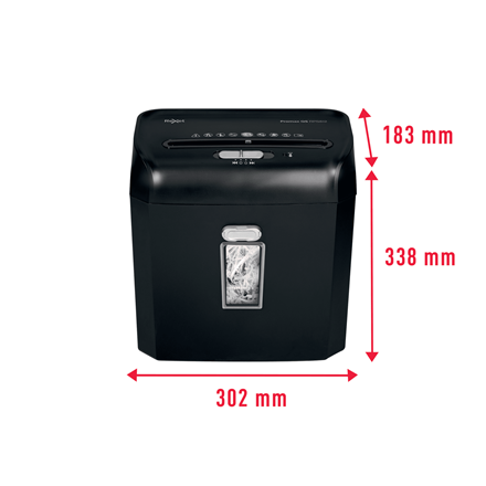 - 12-litrowy pojemnik na ścinki (mieszczący 88 pociętych kartek A4) ze zdejmowaną głowicą niszczarki i okienkiem umożliwiającym podgląd zawartości.