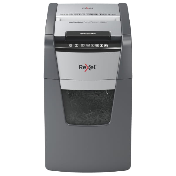 Niszczarka automatyczna do papieru Optimum AutoFeed+ 150X jednorazowo niszczy automatycznie do 150 kartek A4 (80 gsm), tnąc arkusze na konfetti (o wymiarach 4 x 28 mm), co zapewnia poziom bezpieczeństwa P-4. Wyposażona jest w automatyczny podajnik i 44-litrowy pojemnik na ścinki, co sprawia, że idealnie nadaje się do użytku biurowego. Nie wymaga ręcznego podawania papieru ani wcześniejszego usuwania zszywek i spinaczy - ta automatyczna niszczarka całą pracę wykona za Ciebie