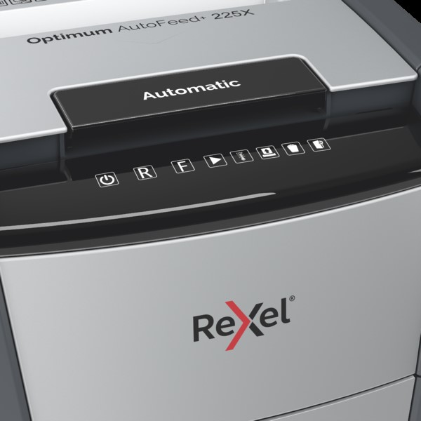 Niszczarka automatyczna do papieru Optimum AutoFeed+ 225X jednorazowo niszczy automatycznie do 225 kartek A4 (80 gsm), tnąc arkusze na konfetti (o wymiarach 4 x 26 mm), co zapewnia poziom bezpieczeństwa P-4. Wyposażona jest w automatyczny podajnik i 60-litrowy pojemnik na ścinki, co sprawia, że idealnie nadaje się do użytku biurowego. Nie wymaga ręcznego podawania papieru ani wcześniejszego usuwania zszywek i spinaczy - ta automatyczna niszczarka całą pracę wykona za Ciebie.