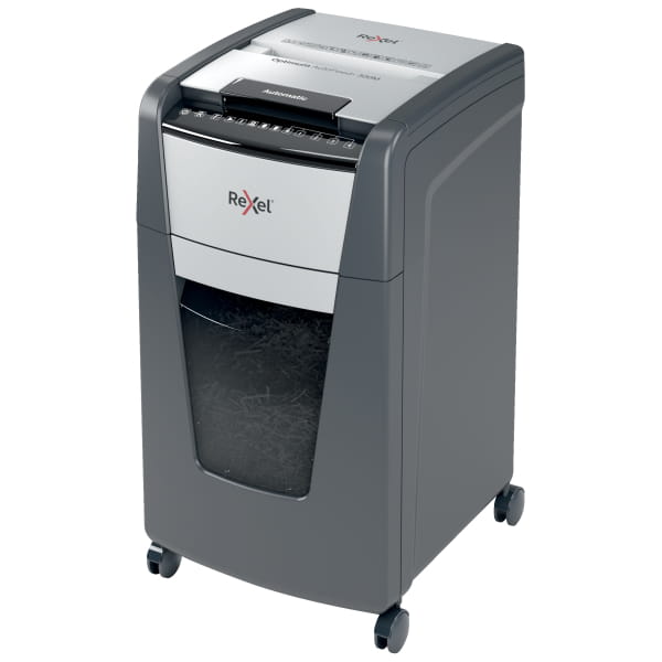 Niszczarka automatyczna do papieru Optimum AutoFeed+ 300M jednorazowo niszczy automatycznie do 300 kartek A4 (80 gsm), tnąc arkusze na mikrościnki (o wymiarach 2 x 15 mm), co zapewnia poziom bezpieczeństwa P-5. Wyposażona jest w automatyczny podajnik i 60-litrowy pojemnik na ścinki, co sprawia, że idealnie nadaje się do użytku biurowego. Nie wymaga ręcznego podawania papieru ani wcześniejszego usuwania zszywek i spinaczy - ta automatyczna niszczarka całą pracę wykona za Ciebie.