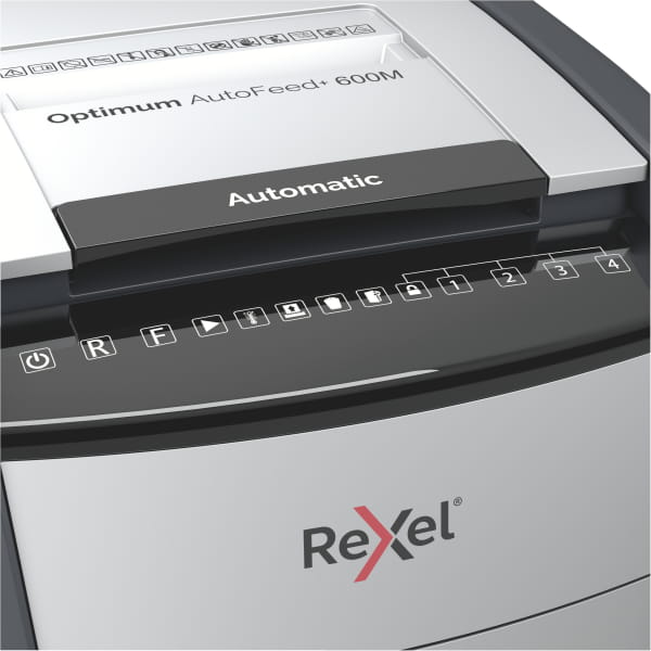 Niszczarka automatyczna do papieru Optimum AutoFeed+ 600M jednorazowo niszczy automatycznie do 600 kartek A4 (80 gsm), tnąc arkusze na mikrościnki (o wymiarach 2 x 15 mm), co zapewnia poziom bezpieczeństwa P-5. Wyposażona jest w automatyczny podajnik i 110-litrowy pojemnik na ścinki, co sprawia, że idealnie nadaje się do użytku biurowego. Nie wymaga ręcznego podawania papieru ani wcześniejszego usuwania zszywek i spinaczy - ta automatyczna niszczarka całą pracę wykona za Ciebie.