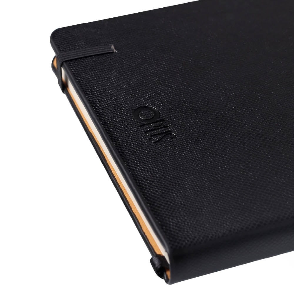 Notes Notatnik biurowy twardy w linię zamykany na gumkę - O.NOTE London - 207 x 145 mm (A5) - czarny OPUS