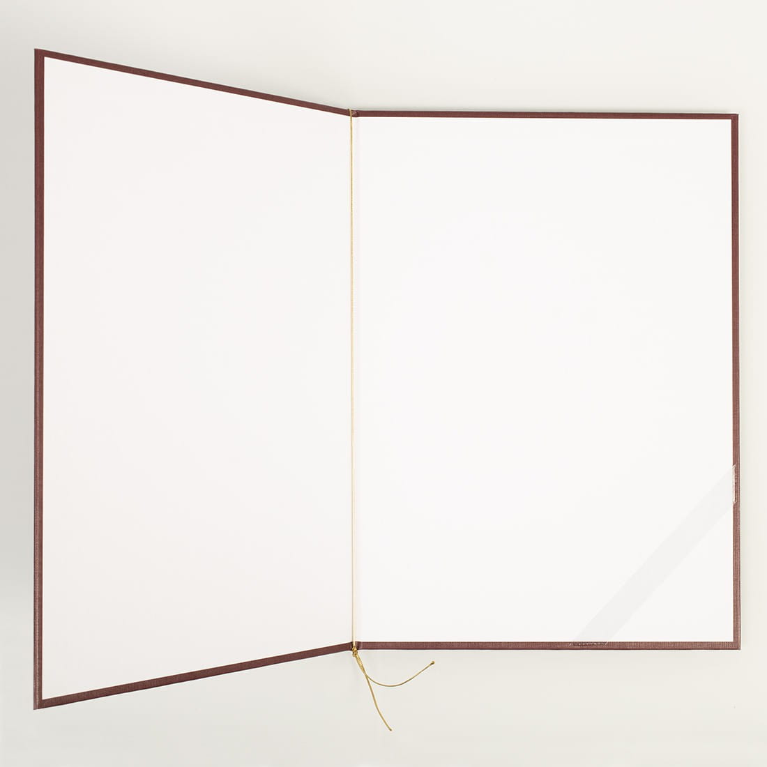 Twarde okładki na dyplomy w okleinie "Classic" z białą wyklejką. Faktura okleiny "Classic" przypomina materiał wykonany z lnu. Dodatkowo we wnętrzu przezroczysta tasiemka i złoty sznureczek, które mają za zadanie przytrzymanie dyplomu na miejscu.