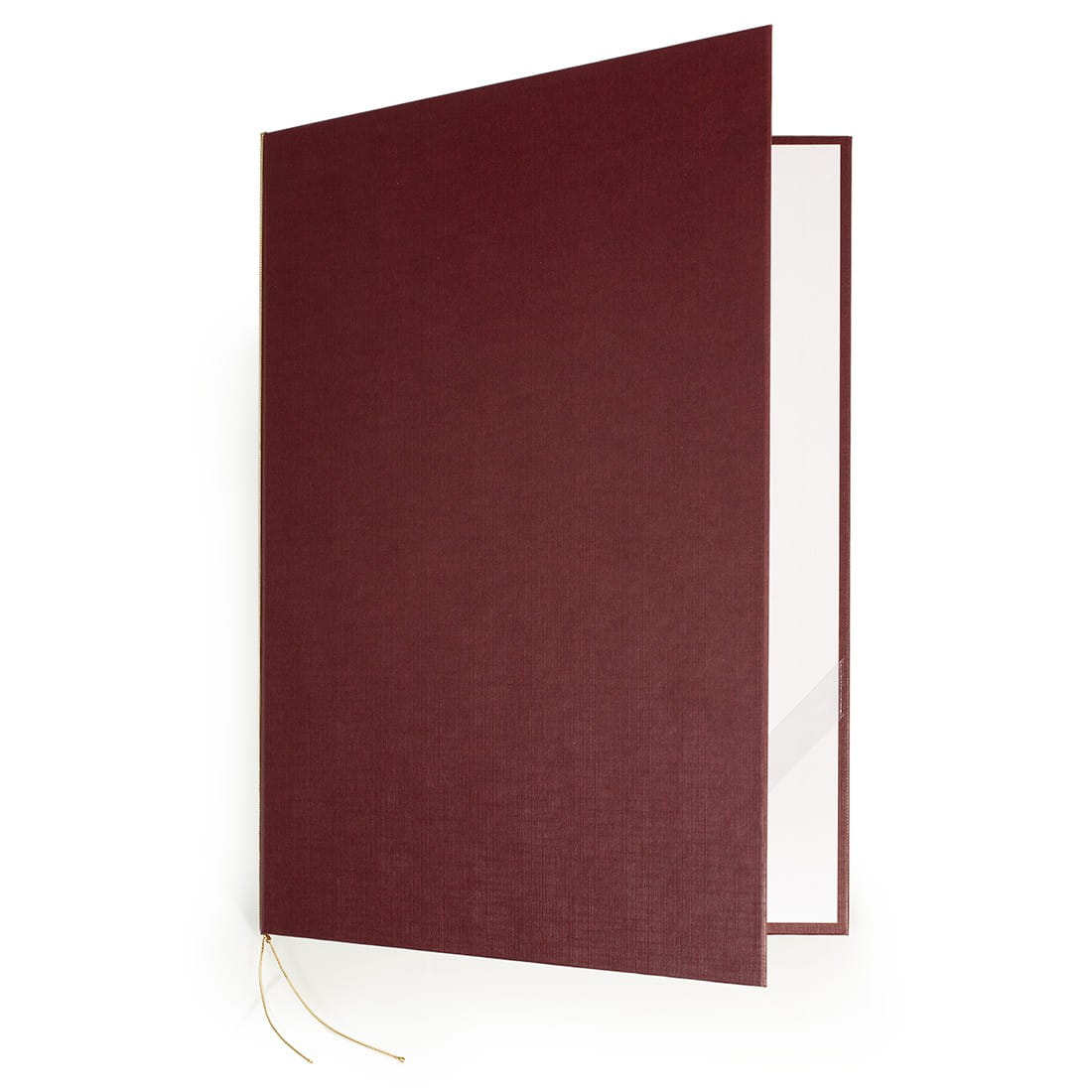Twarde okładki na dyplomy w okleinie "Classic" z białą wyklejką. Faktura okleiny "Classic" przypomina materiał wykonany z lnu. Dodatkowo we wnętrzu przezroczysta tasiemka i złoty sznureczek, które mają za zadanie przytrzymanie dyplomu na miejscu.